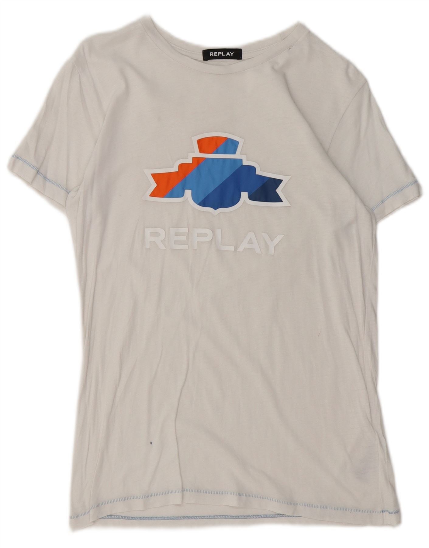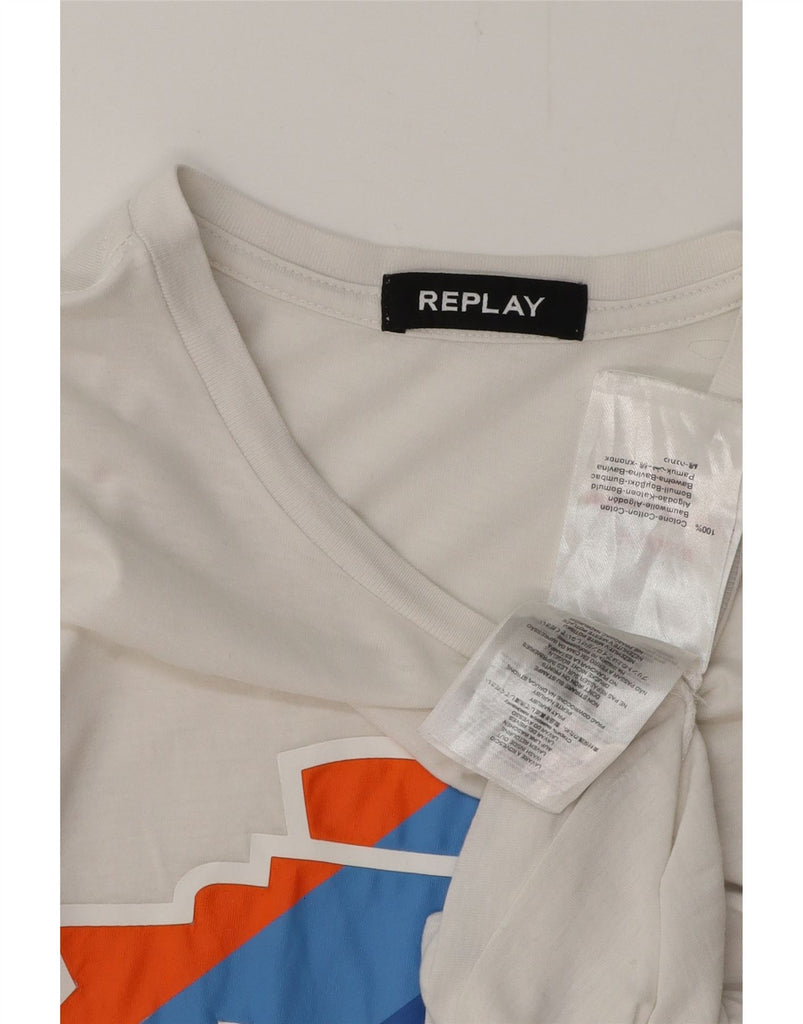 Camiseta feminina REPLAY com estampa gráfica UK 12 algodão branco médio