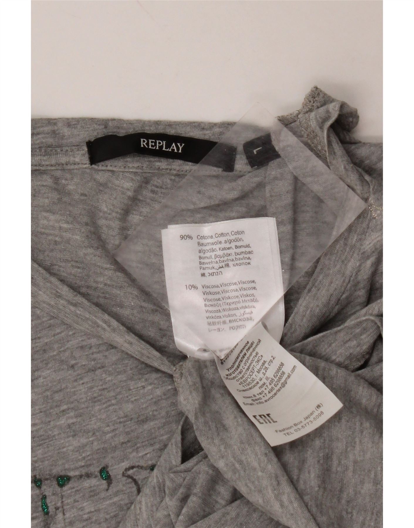 Camiseta feminina REPLAY com estampa gráfica UK 16 grande algodão cinza