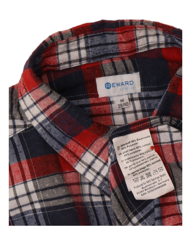 Camisa masculina de flanela REWARD Reino Unido 39/40 algodão xadrez vermelho médio
