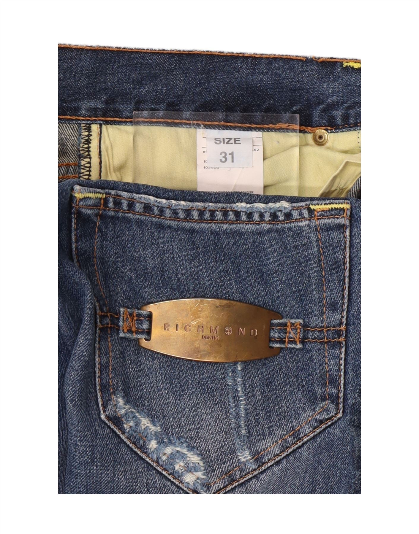 RICHMOND Calça jeans reta masculina desgastada W31 L34 algodão azul