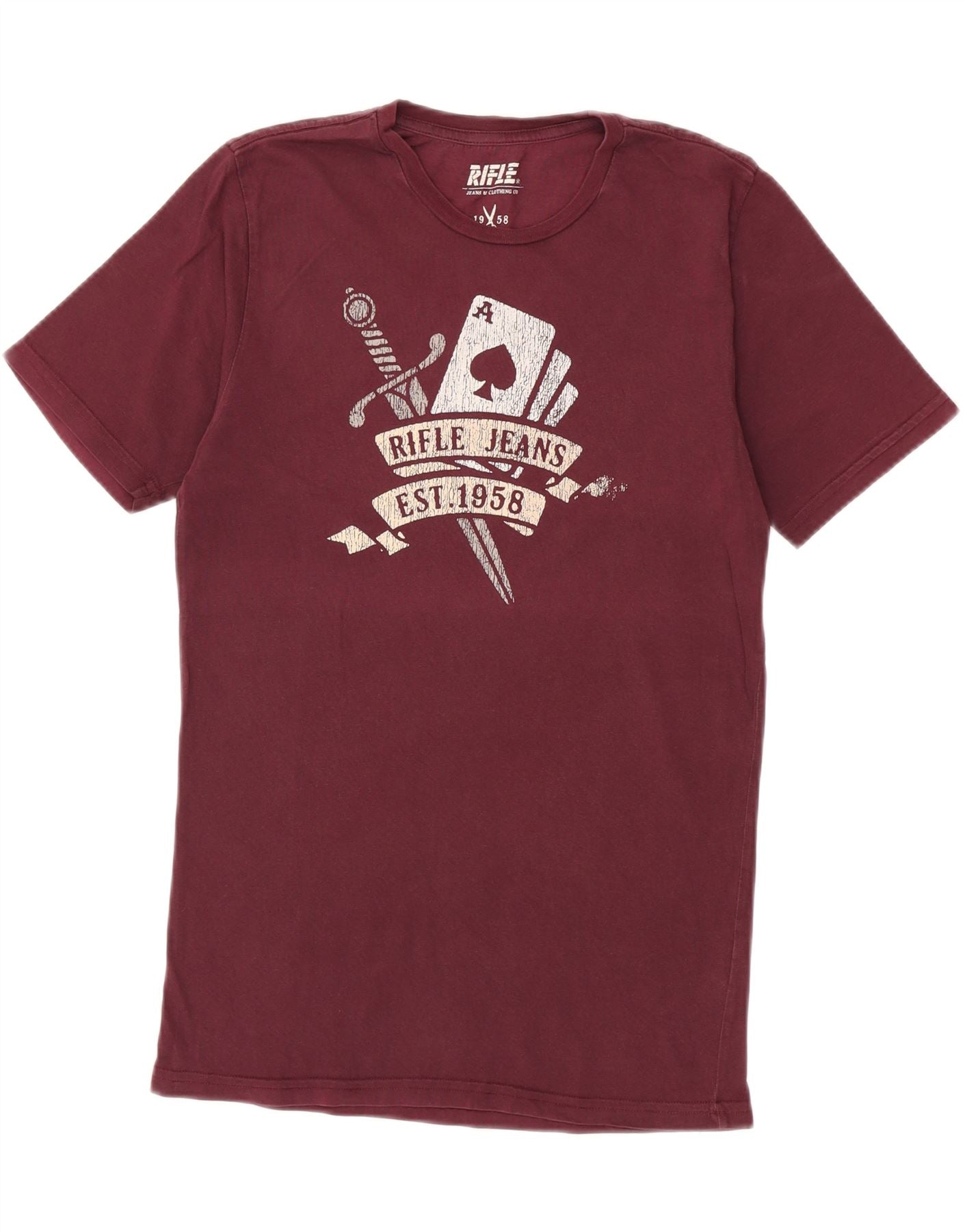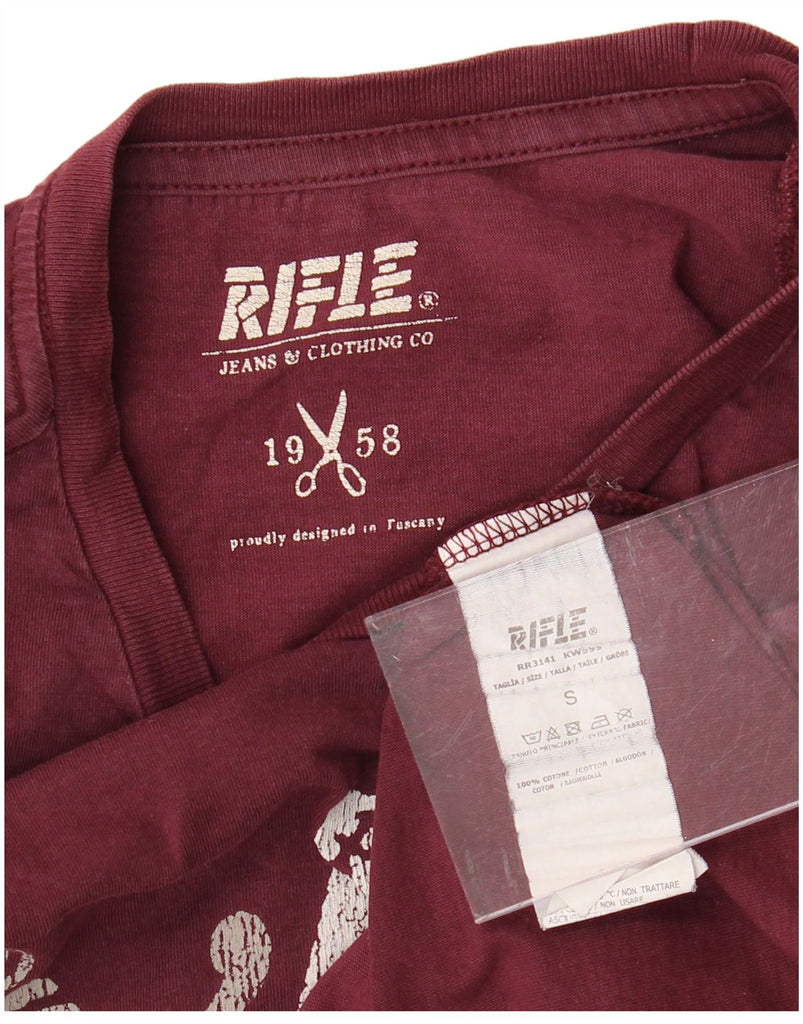Camiseta masculina RIFLE com estampa gráfica pequena de algodão Borgonha
