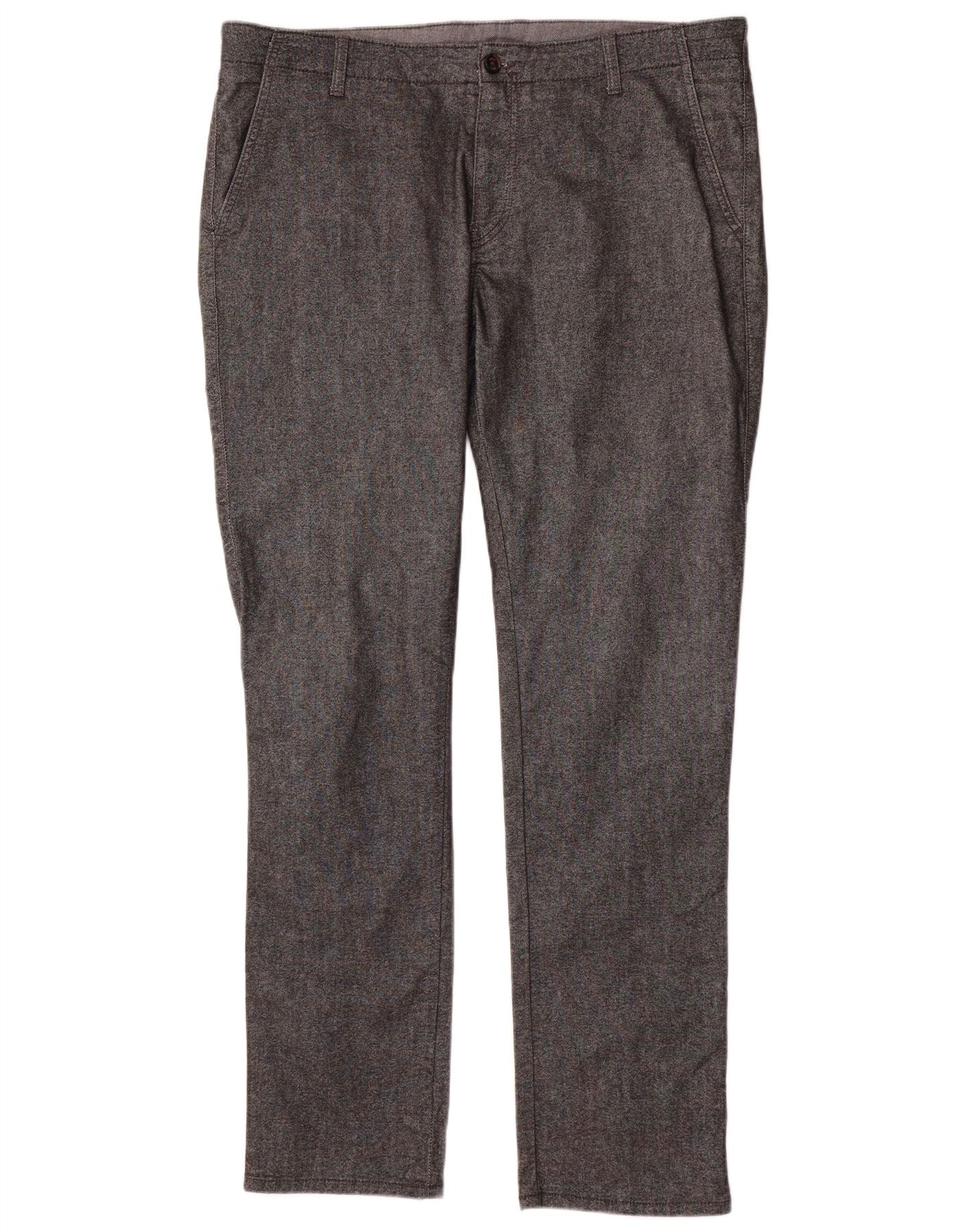Calça Rifle Mens Slim W38 L34 Cinza Espinha de Algodão