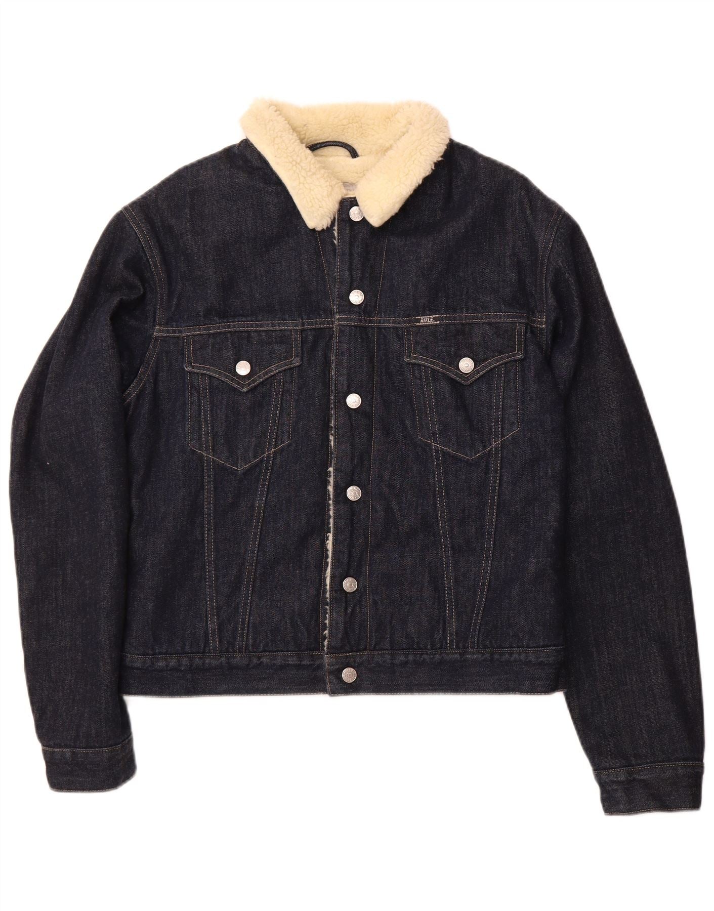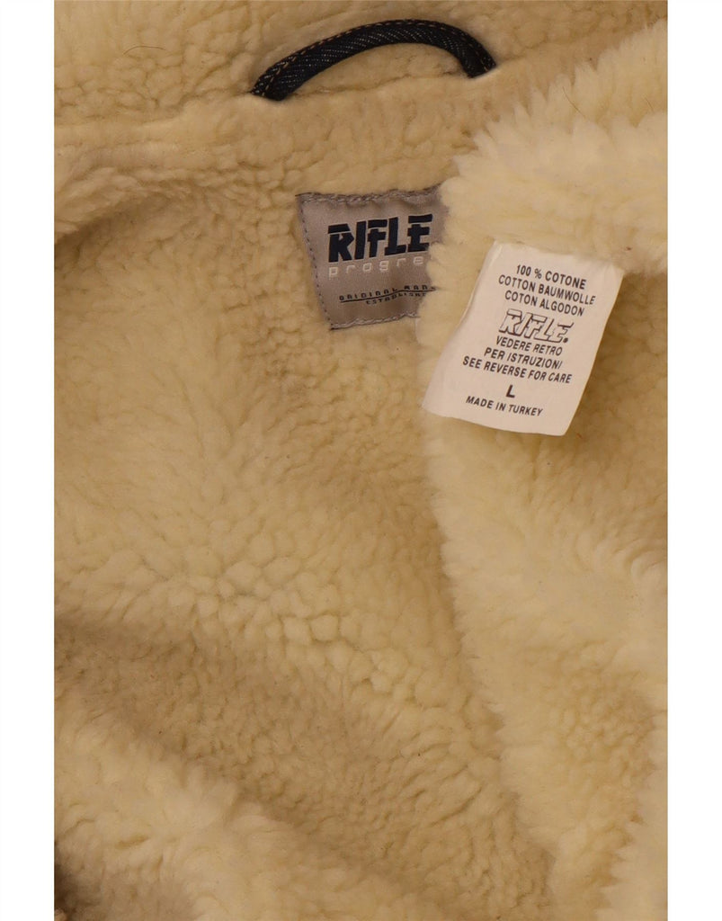 Jaqueta jeans feminina RIFLE Sherpa Reino Unido 16 grande algodão azul marinho