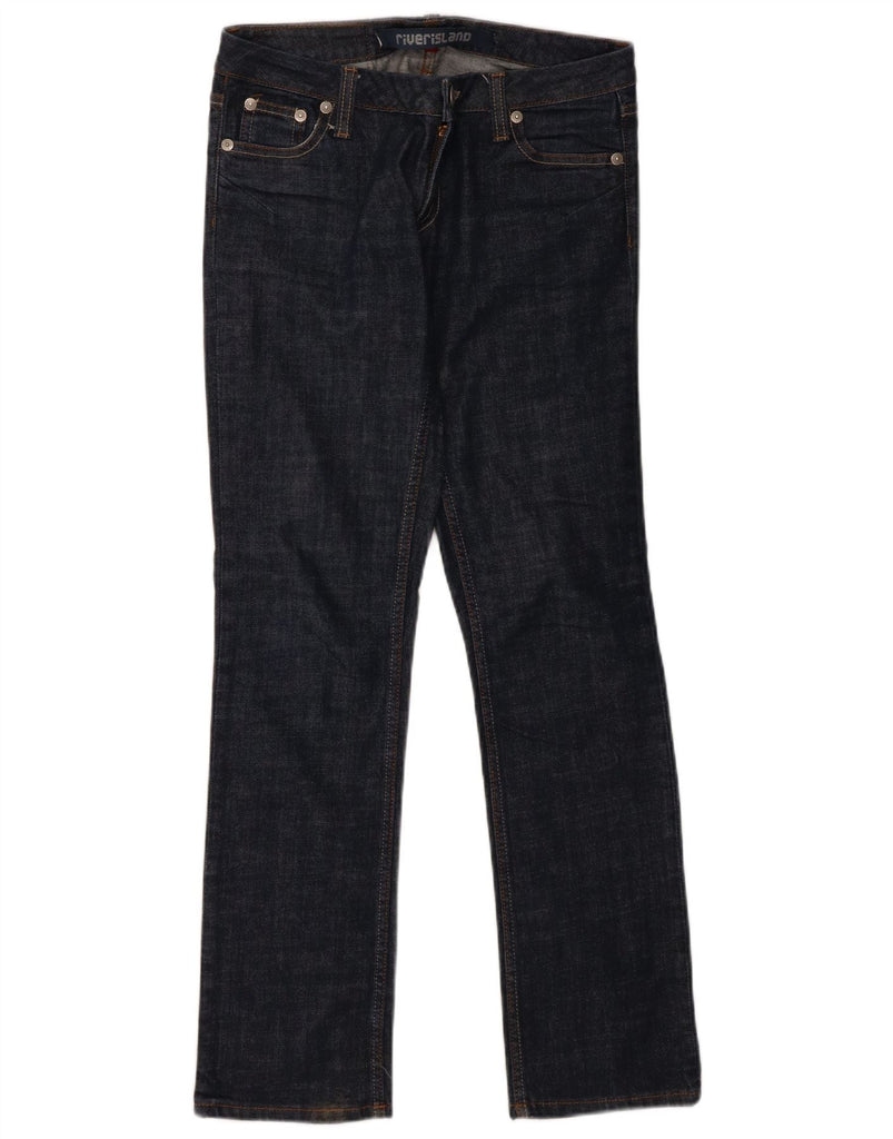RIVER ISLAND Calça jeans reta feminina UK 12 Médio W32 L31 Azul marinho