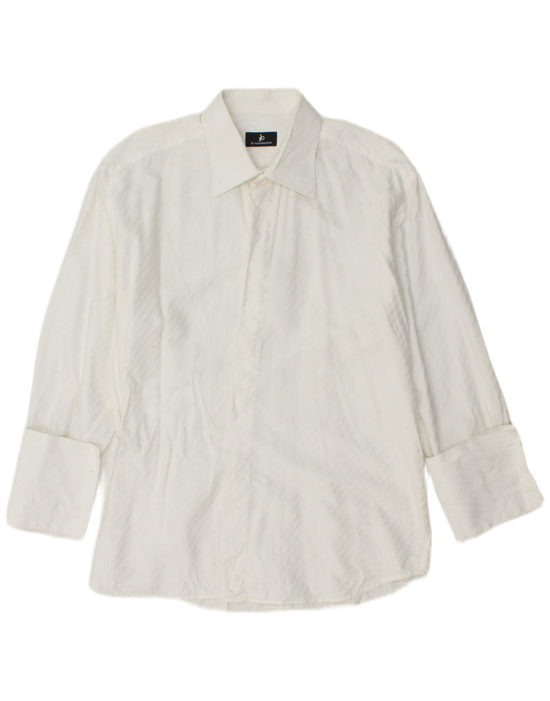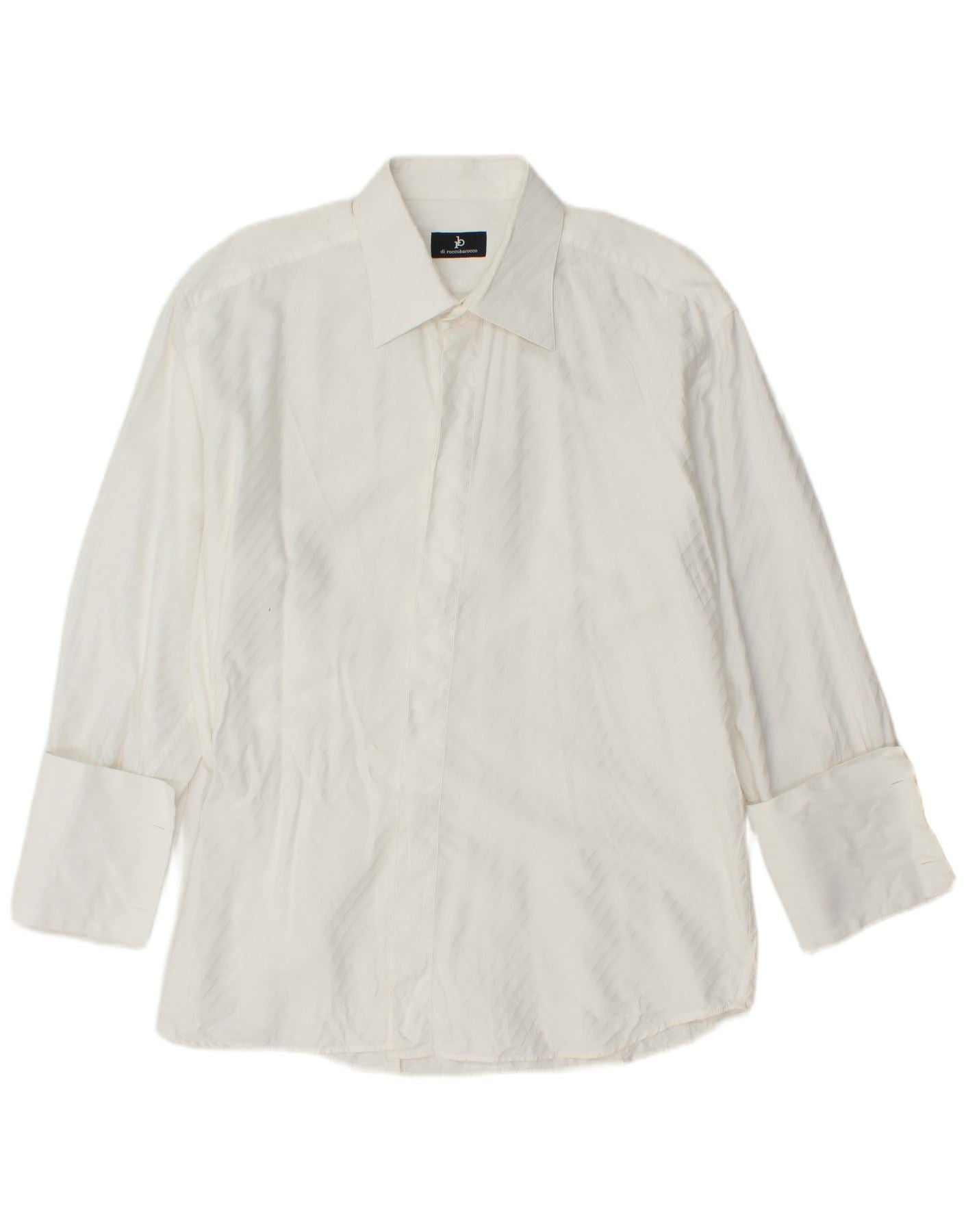 ROCCOBAROCCO Camisa formal masculina de algodão listrado branco médio