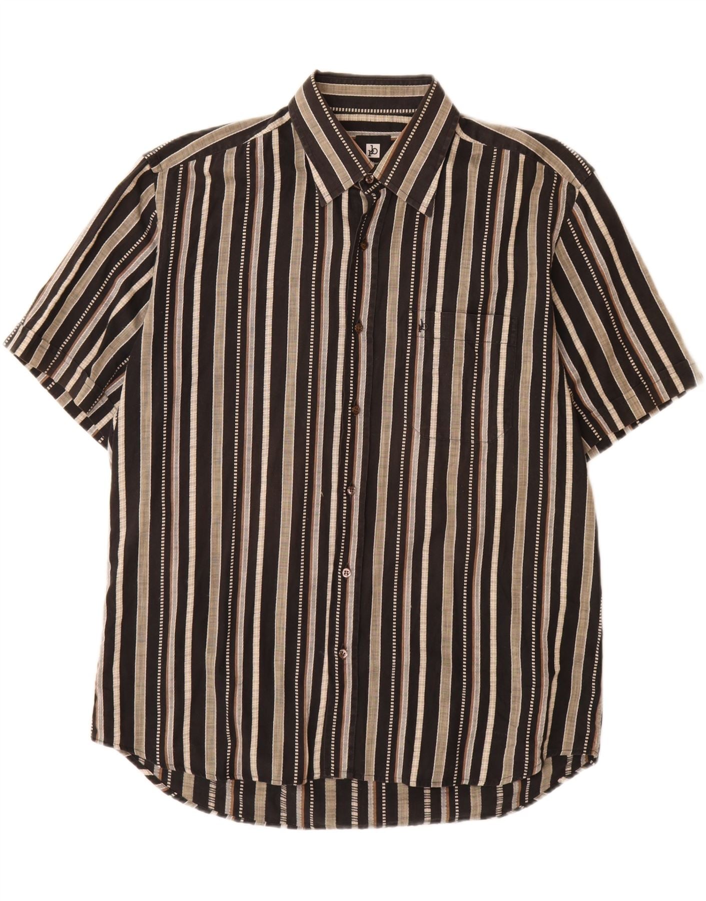 ROCCOBAROCCO Mens Short Sleeve Shirt Size 16 1/2 42 Large Brown Striped