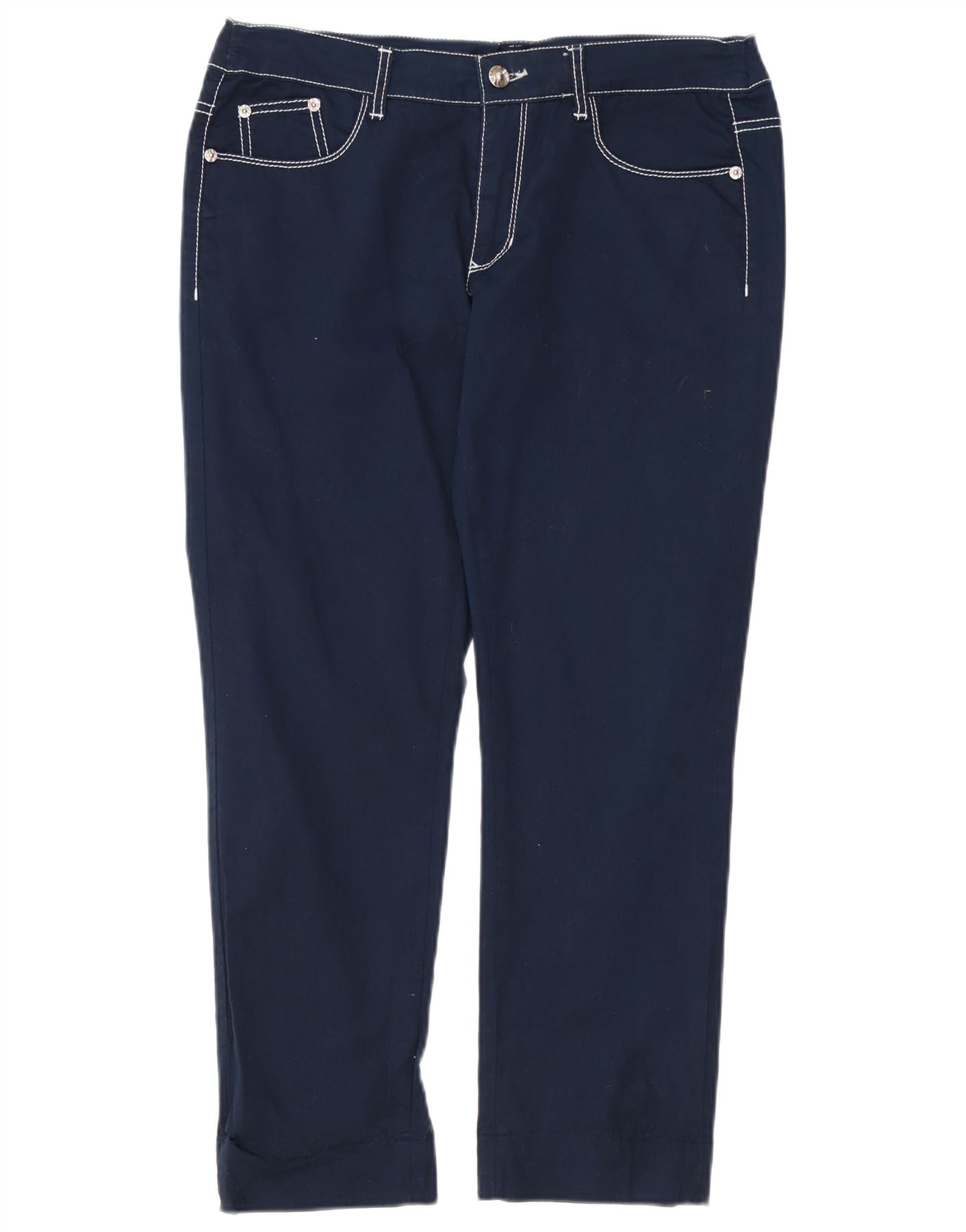 Calça feminina casual reta ROCCOBAROCCO IT 47 grande W33 L27 azul marinho