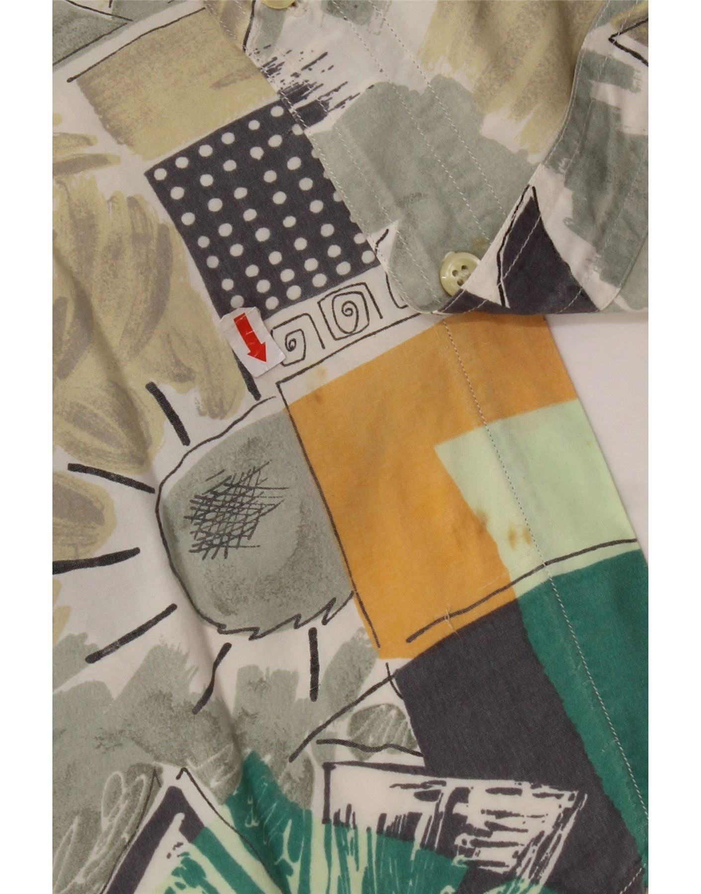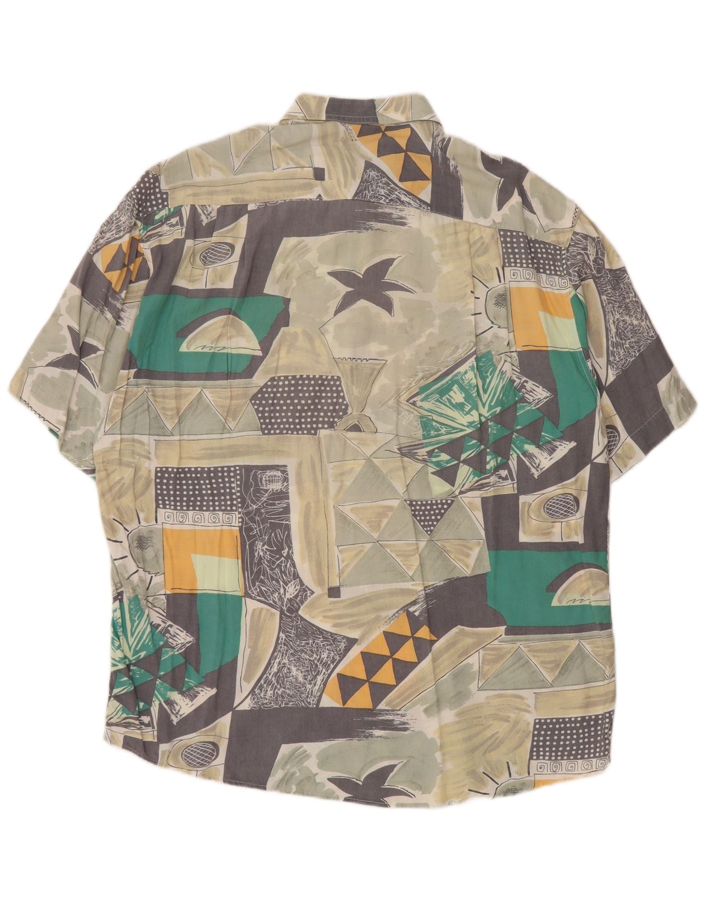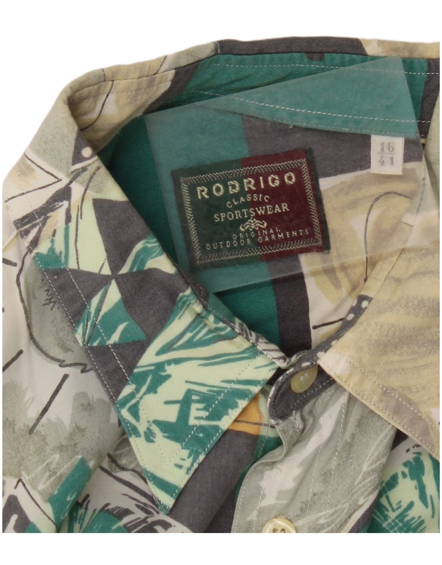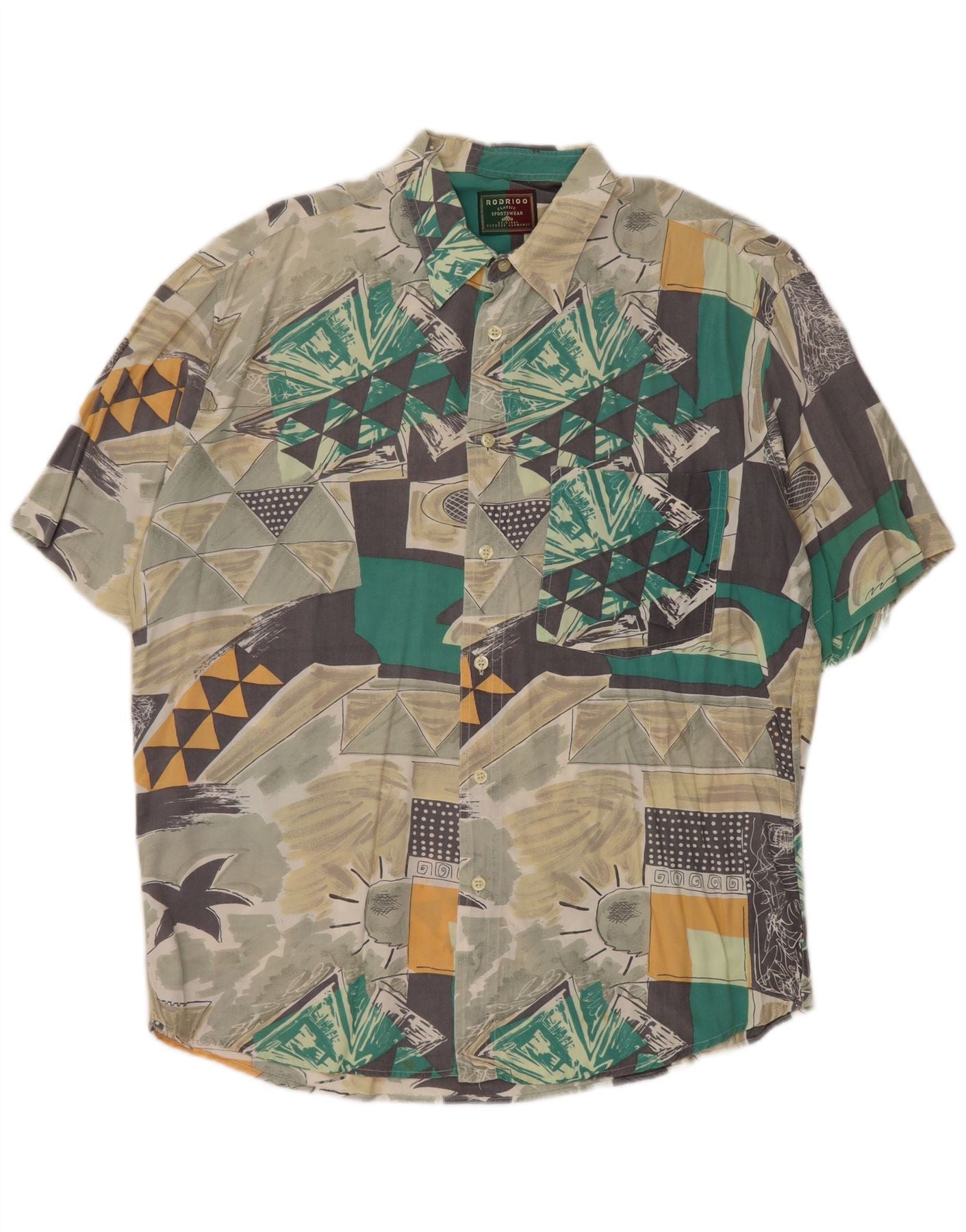 RODRIGO Camisa masculina de manga curta tamanho 16 41 grande multicolorida geométrica