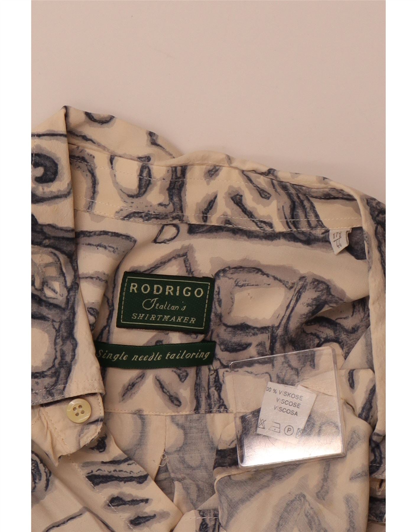 RODRIGO Camisa masculina de manga curta tamanho 17 1/2 44 XL branca viscose geométrica