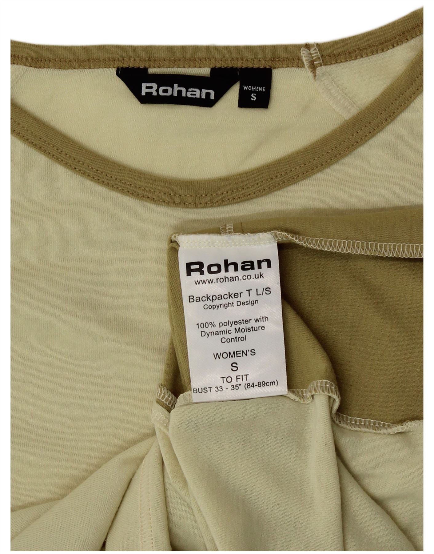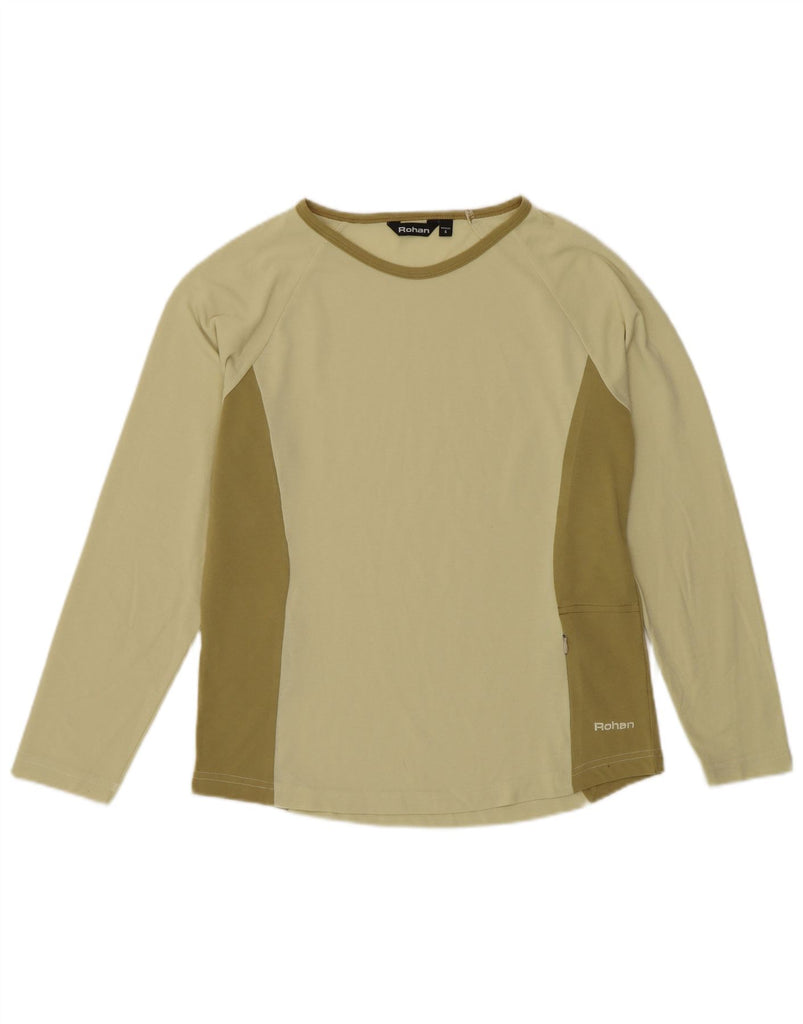 ROHAN Top feminino de manga comprida UK 10 poliéster colorblock cáqui pequeno