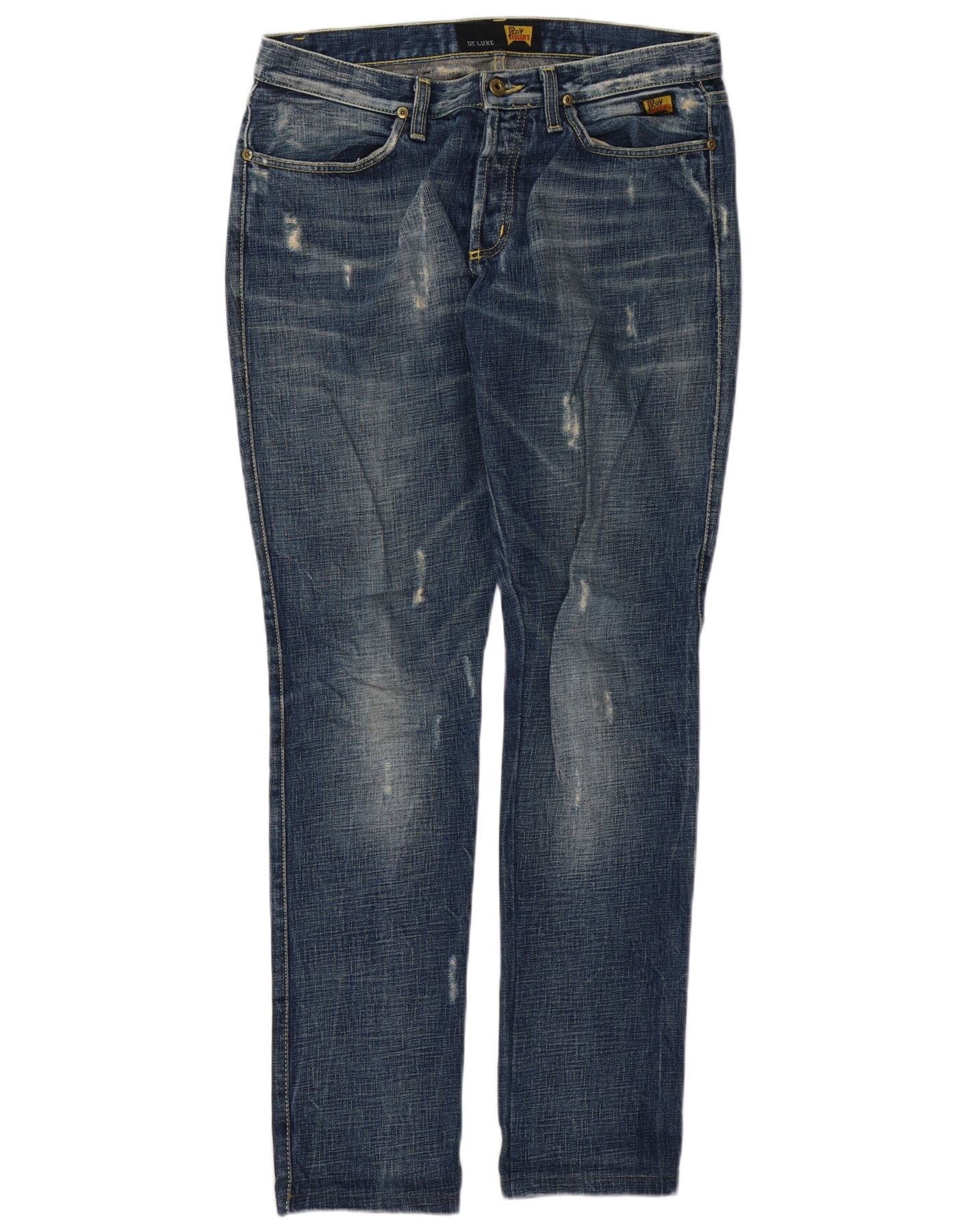Roy Rogers Womens De Luxe Distressed Slim Jeans W30 L31 Azul Marinho Algodão