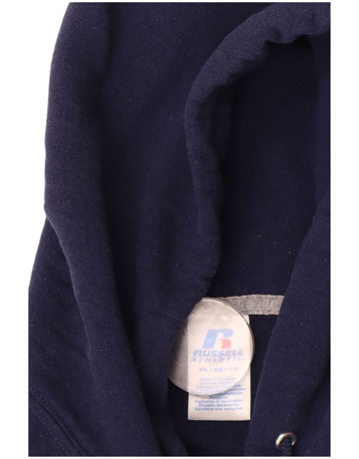 RUSSELL ATHLETIC Mens Graphic Hoodie Jumper XL Navy Blue Cotton