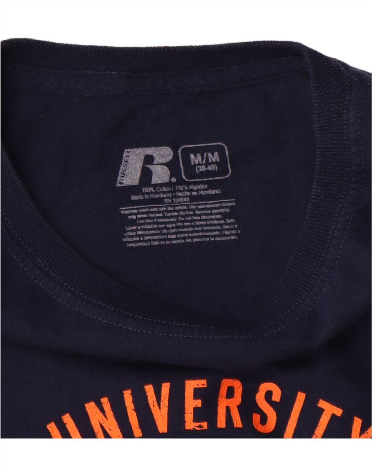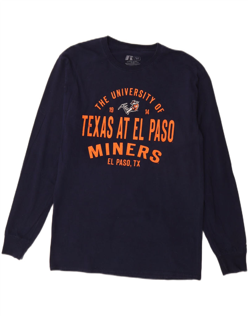 Top gráfico masculino RUSSELL ATLÉTICO manga comprida Reino Unido 38/40 médio azul marinho
