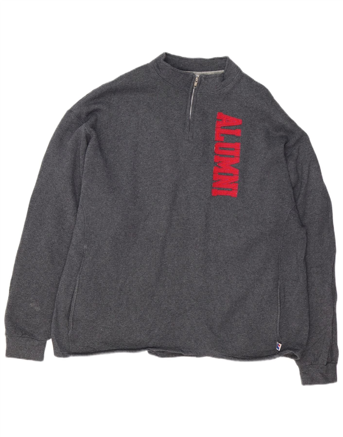 RUSSELL ATLÉTICO Masculino Gráfico Zip Neck Moletom Jumper 2XL Algodão Cinza
