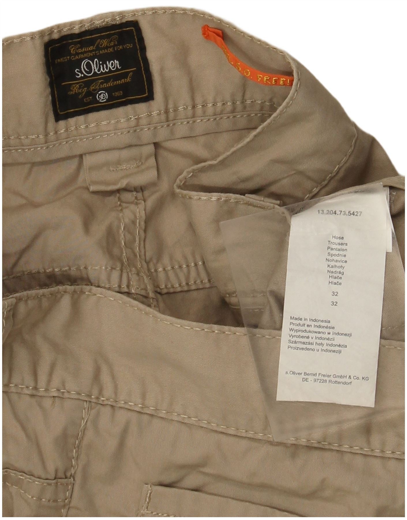 S.Oliver Calça masculina reta casual W32 L29 algodão bege