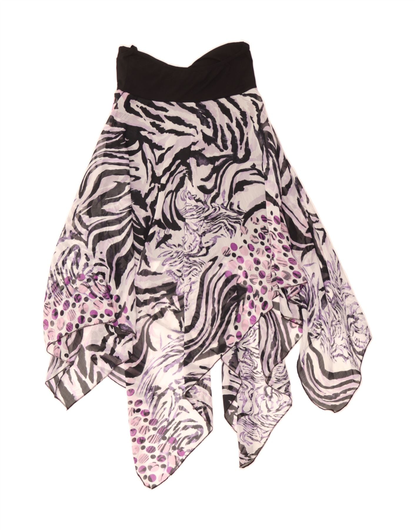 Saia feminina assimétrica VINTAGE média W37 estampa animal roxa