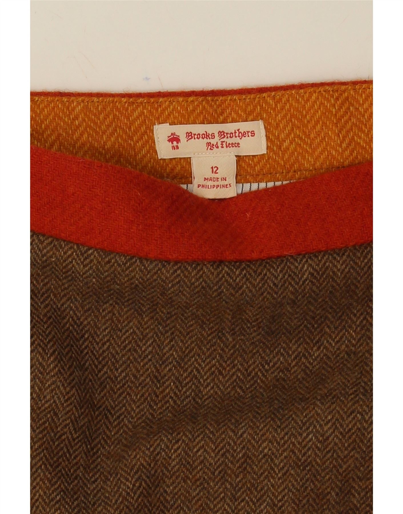 - Descrição da IA: Uma elegante minissaia Brooks Brothers Red Fleece para mulheres. Esta saia formal de inspiração retrô apresenta um clássico tecido de espinha de peixe marrom. Projetado com um ajuste regular, oferece um visual inteligente adequado para diversas ocasiões. Rotulado como tamanho 12. Apresenta-se em excelente estado de uso, com pequenas bolinhas notadas ao redor da cintura, conforme detalhado no relatório de estado. Fabricado nas Filipinas.