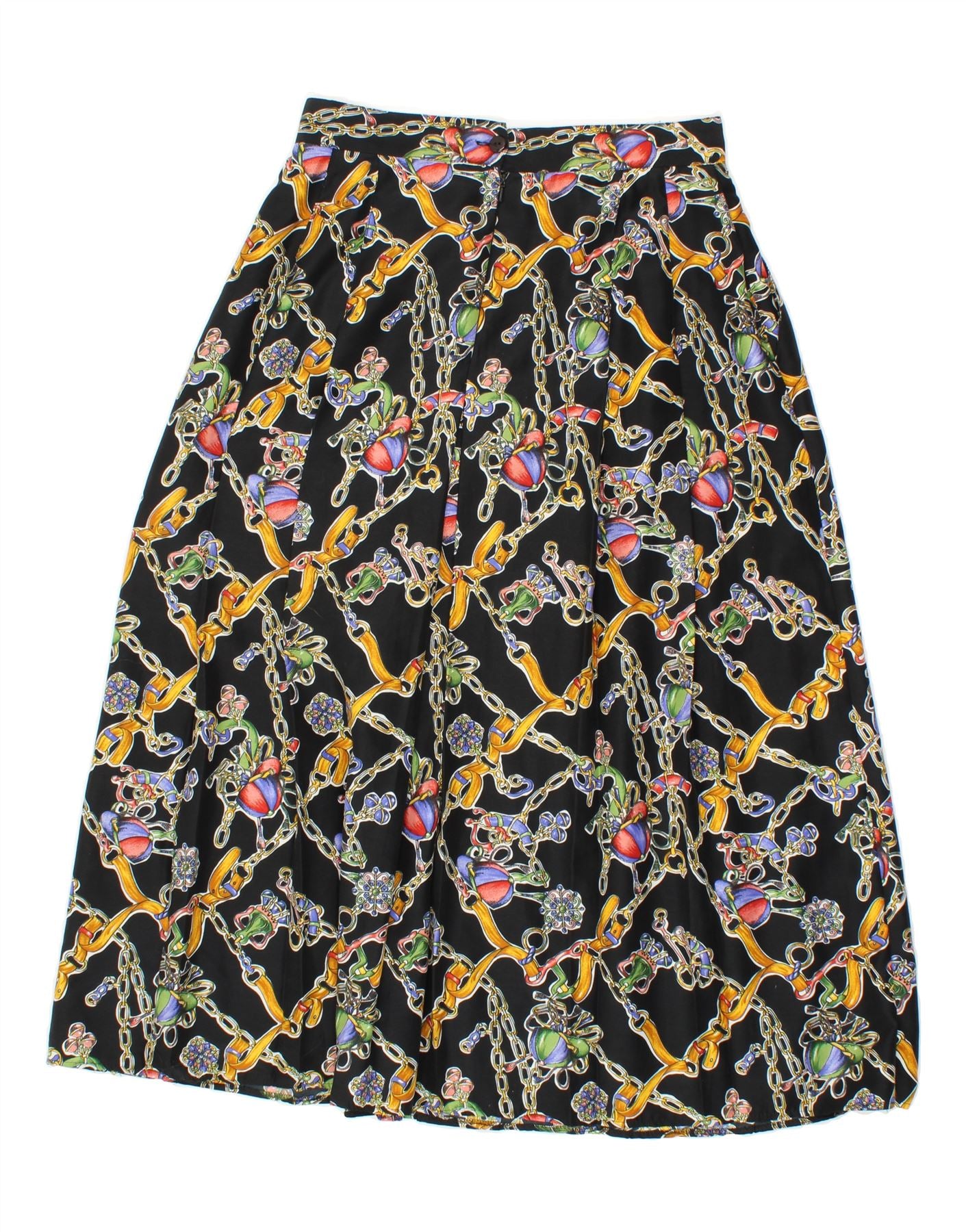 Saia feminina JOHN BENTLEY estampada em linha A Reino Unido 12 médio W28 poliéster preto