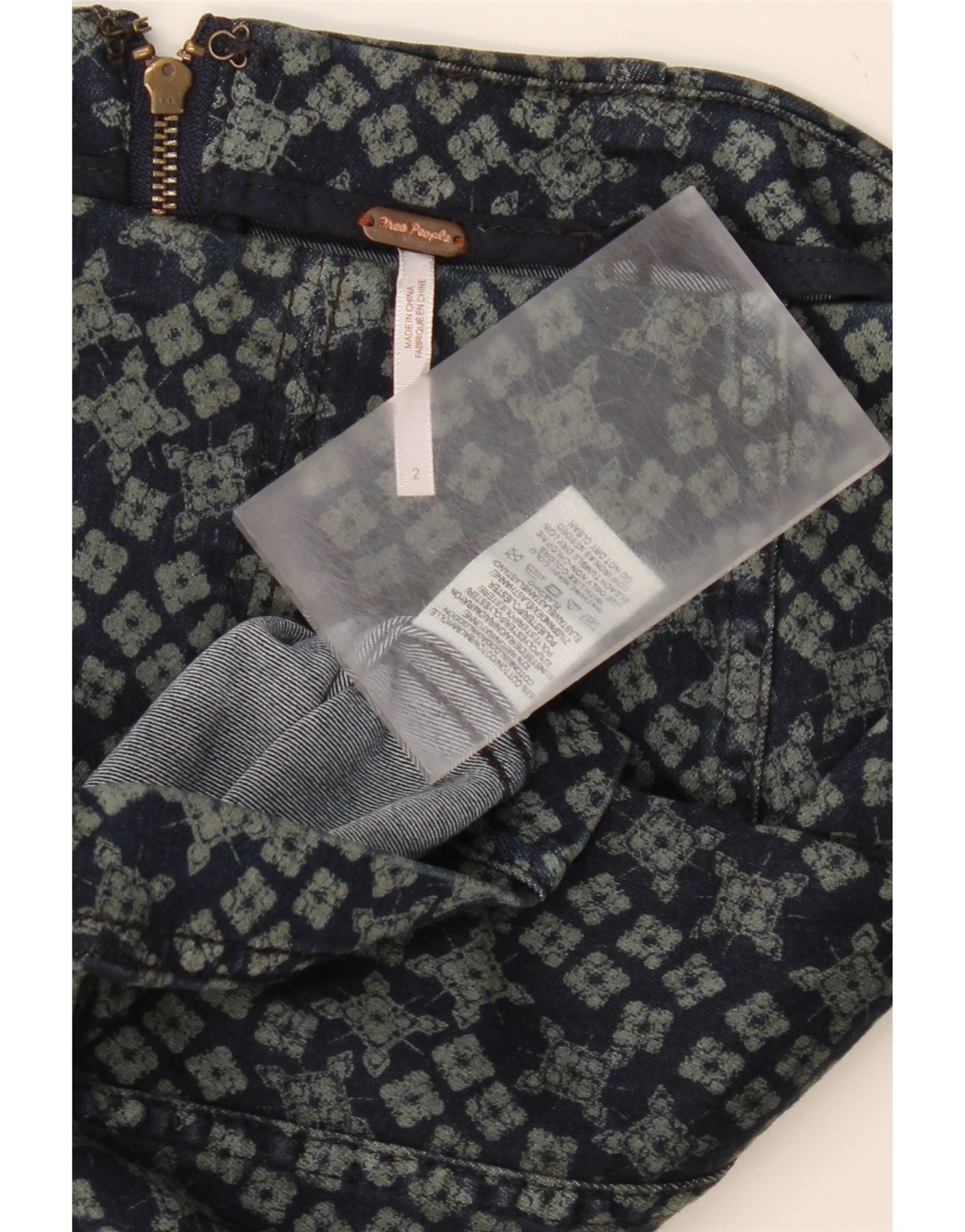Saia jeans feminina FREE PEOPLE EUA 2 XS W26 algodão geométrico azul marinho