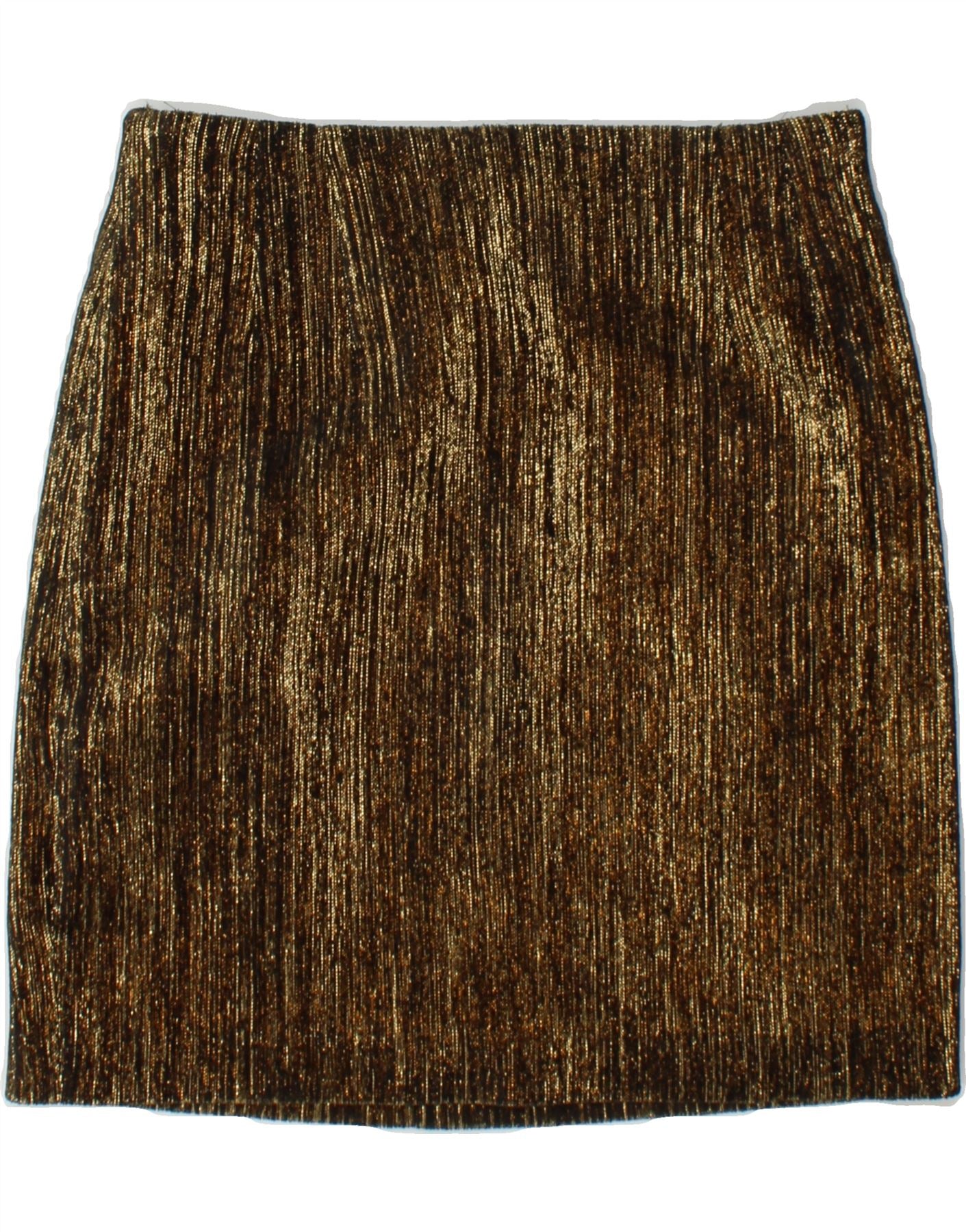 Saia lápis feminina DAS PETITS HAUTS W28 listrada dourada média