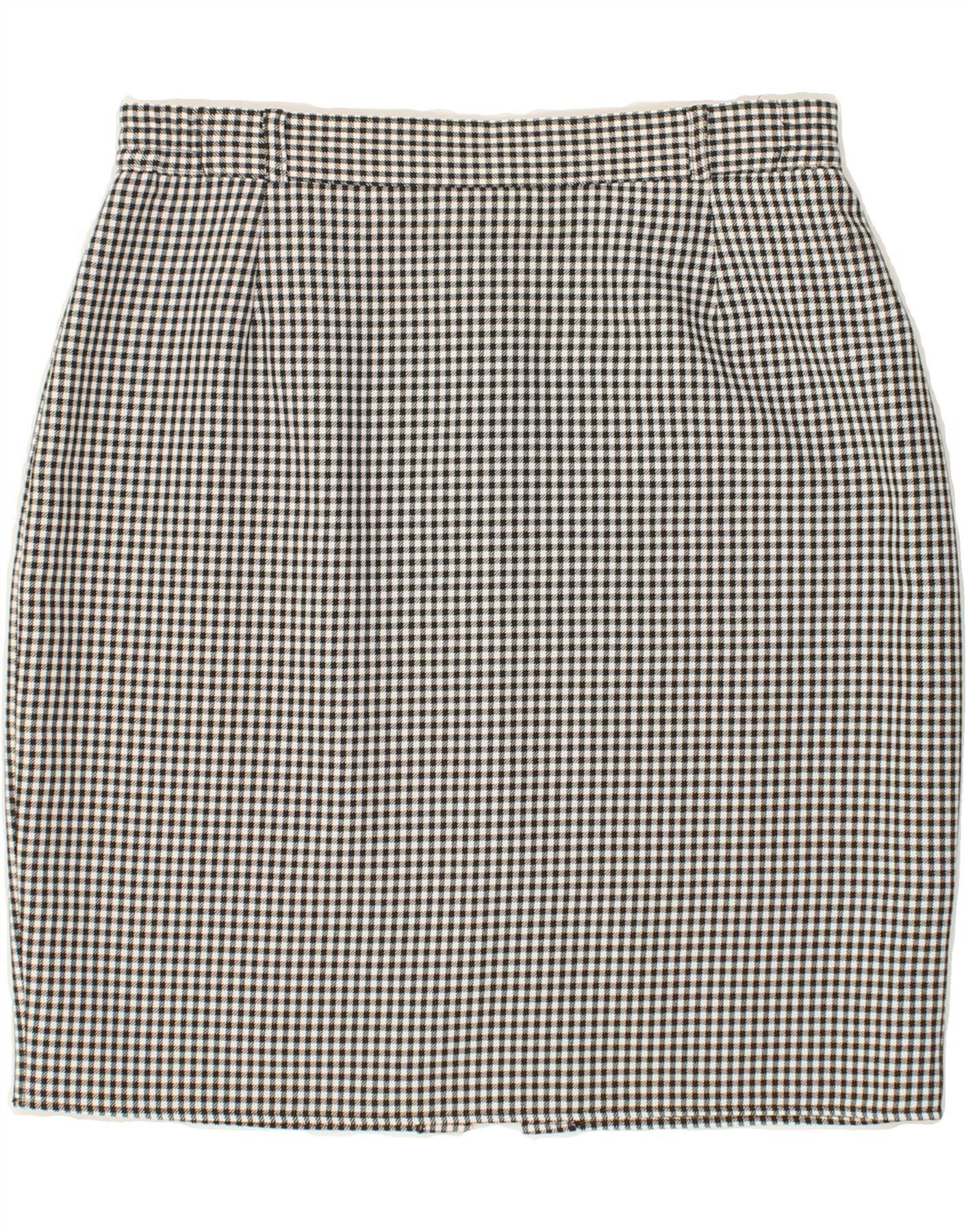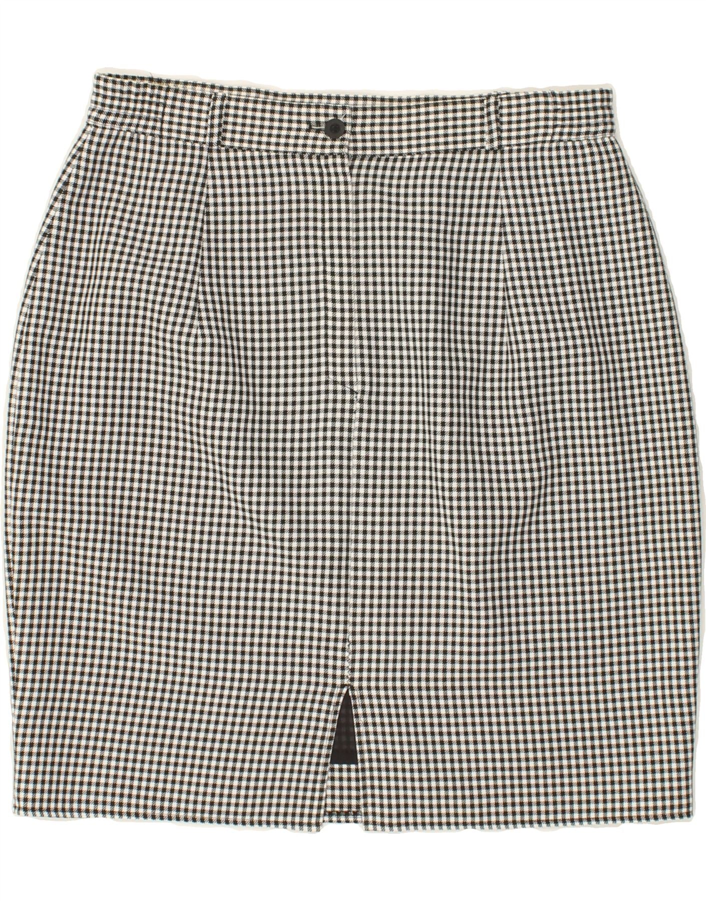 Saia lápis feminina VINTAGE de cintura alta Reino Unido 18 XL W30 poliéster guingão cinza