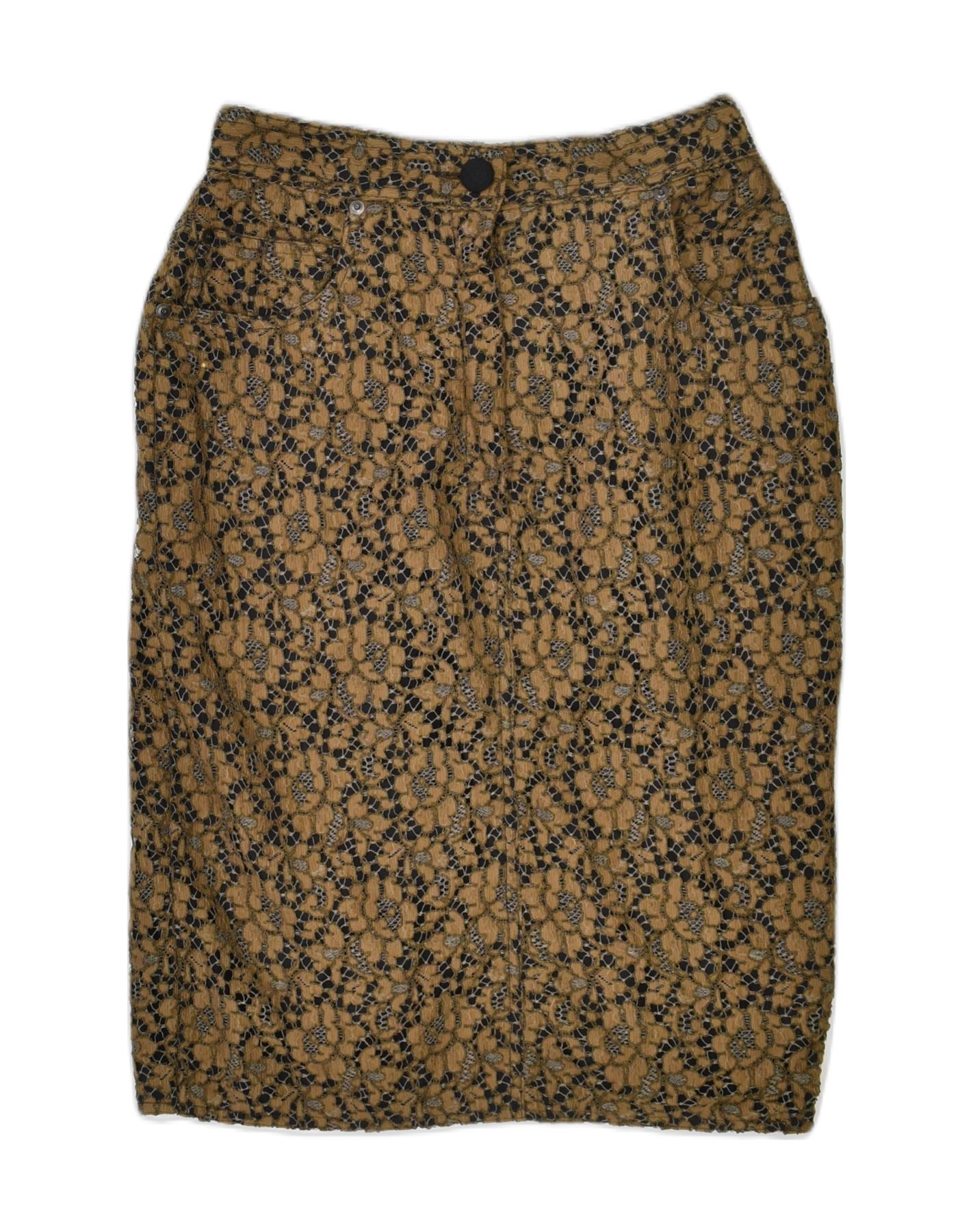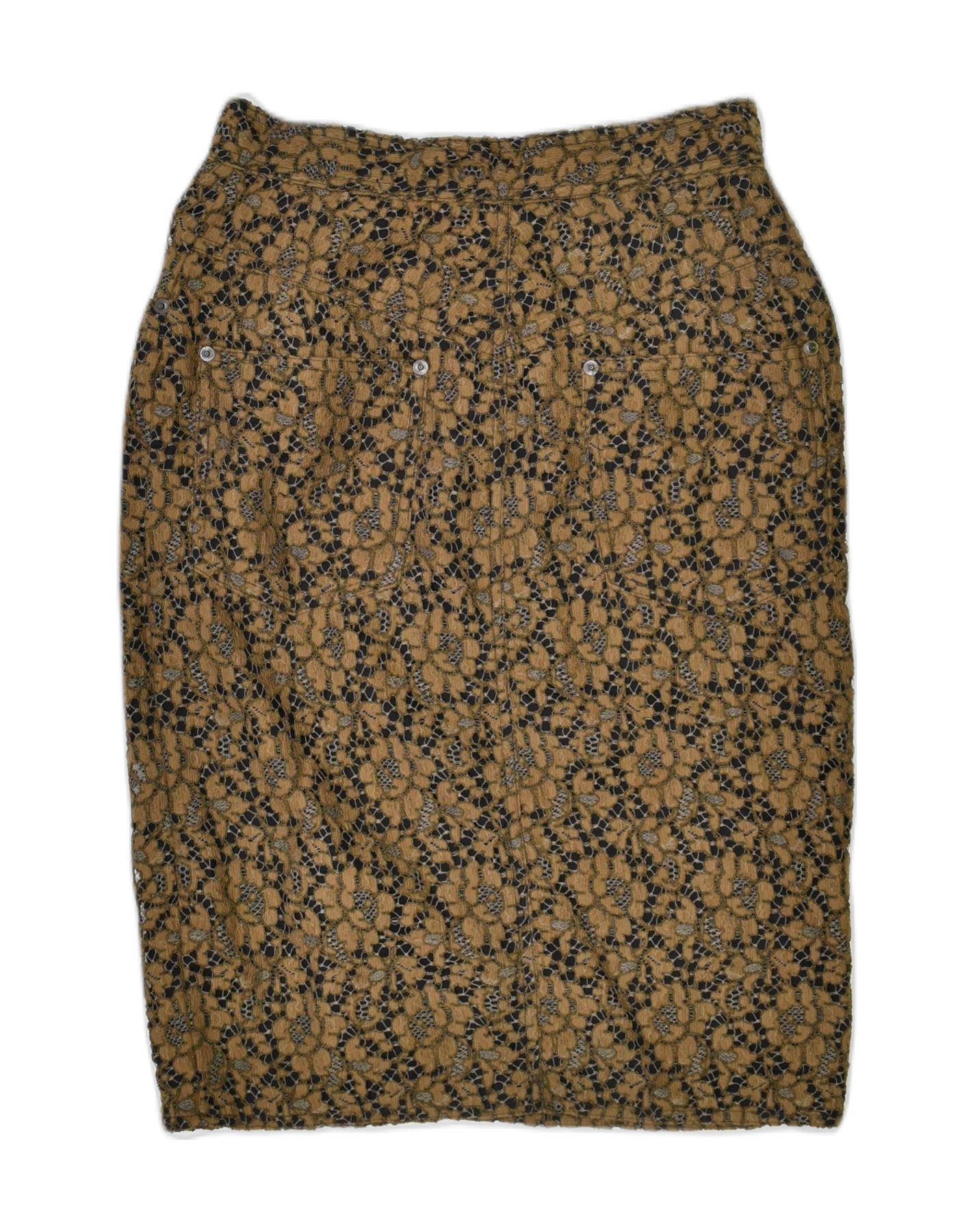 Saia lápis feminina VINTAGE IT 42 médio W26 algodão floral marrom