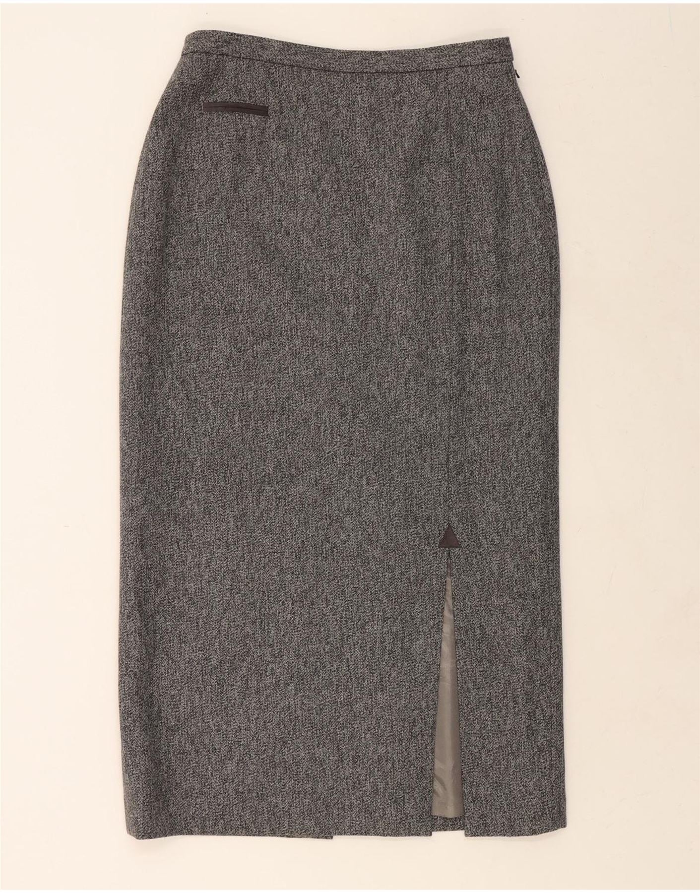- Descrição da IA: Esta clássica saia lápis Avoca é uma adição atemporal a qualquer guarda-roupa. Confeccionada em tweed cinza, esta saia tamanho 16 do Reino Unido apresenta cintura alta e um ajuste regular confortável. O fecho pull-on garante facilidade de uso, enquanto o forro completo proporciona uma silhueta suave. Perfeito para ocasiões profissionais e casuais. Esta saia usada está em excelentes condições.