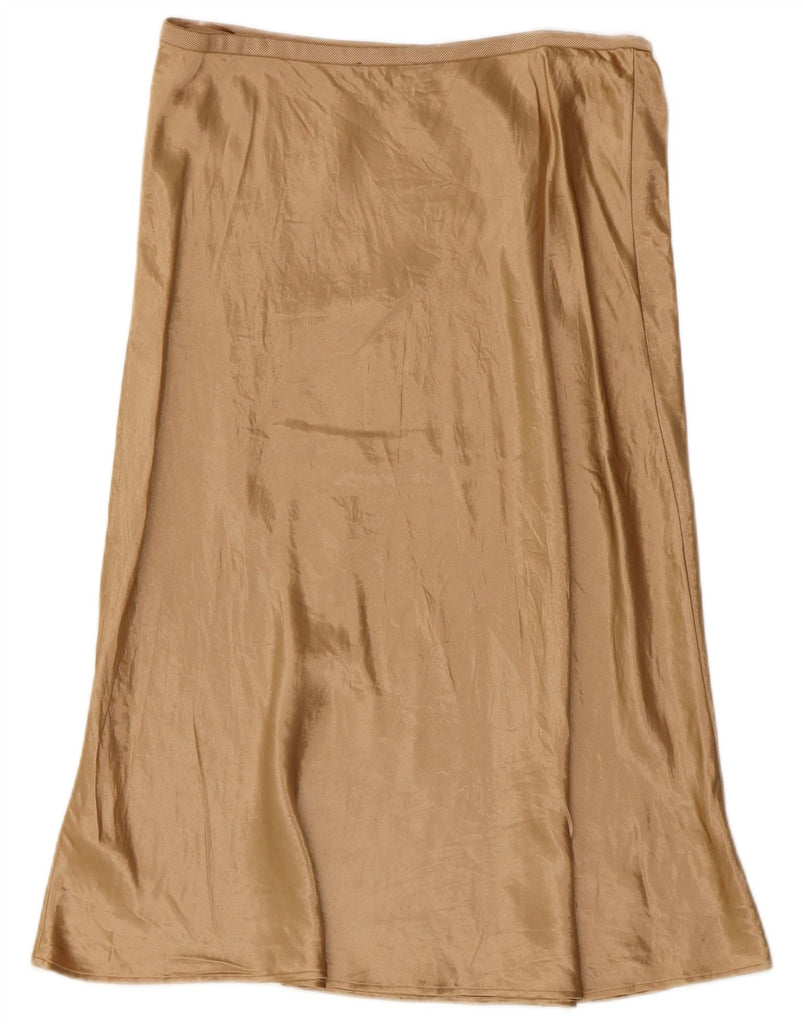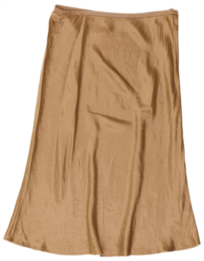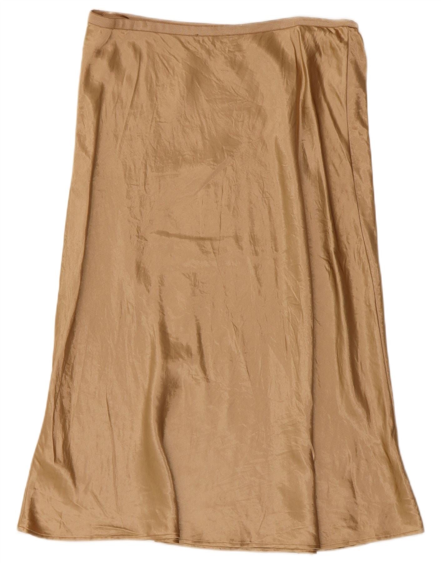 Saia midi feminina MARKS & SPENCER Reino Unido 14 grande acetato dourado