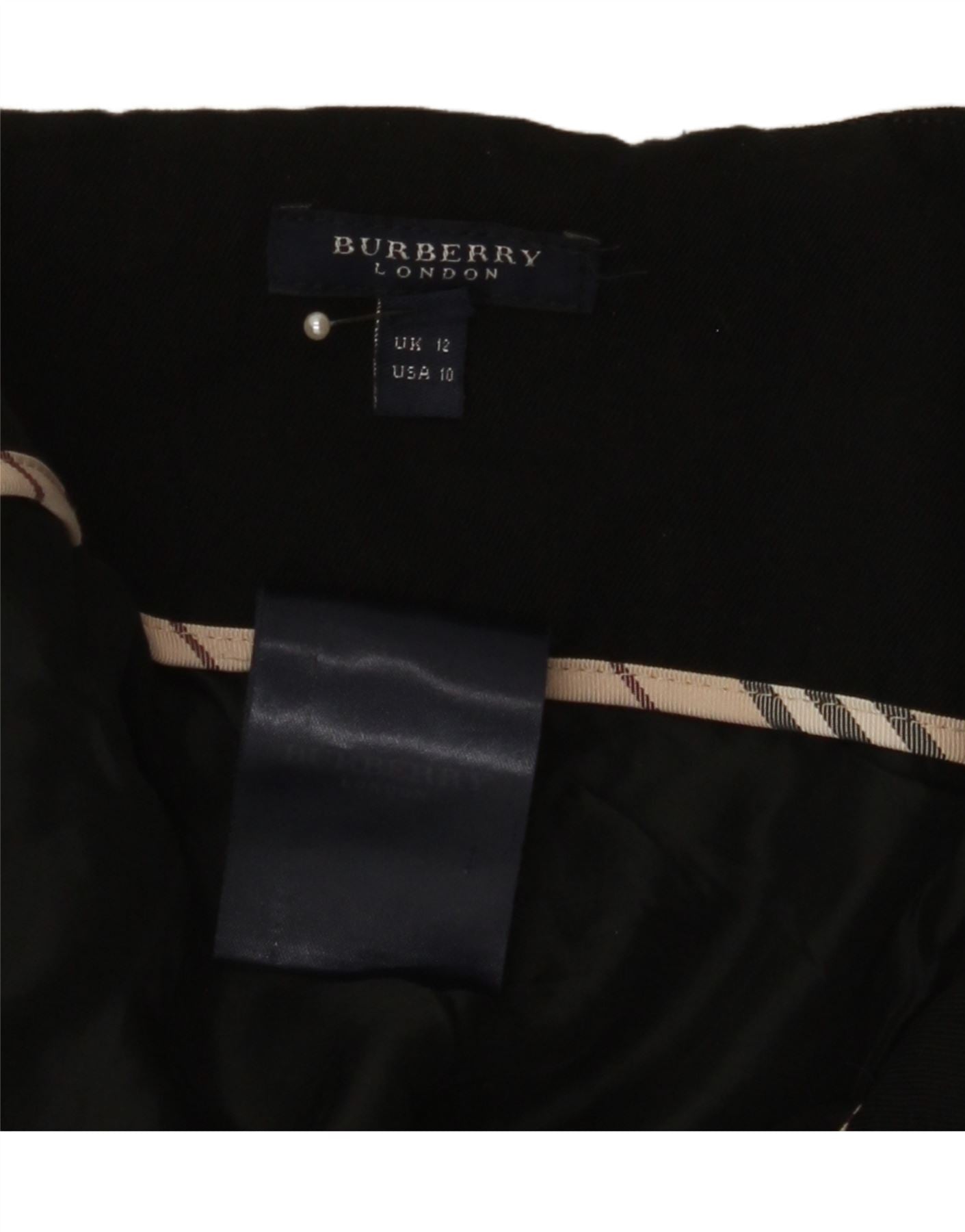Saia plissada feminina BURBERRY Reino Unido 12 médio W32 lã preta