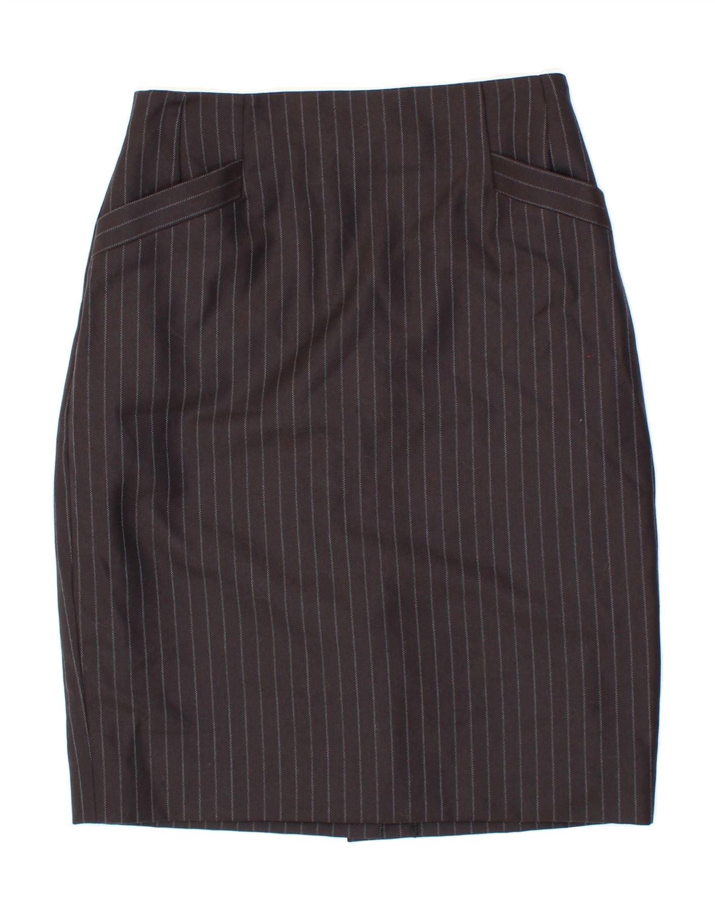 Saia reta feminina AUSTIN REED Reino Unido 14 médio W30 lã listrada preta