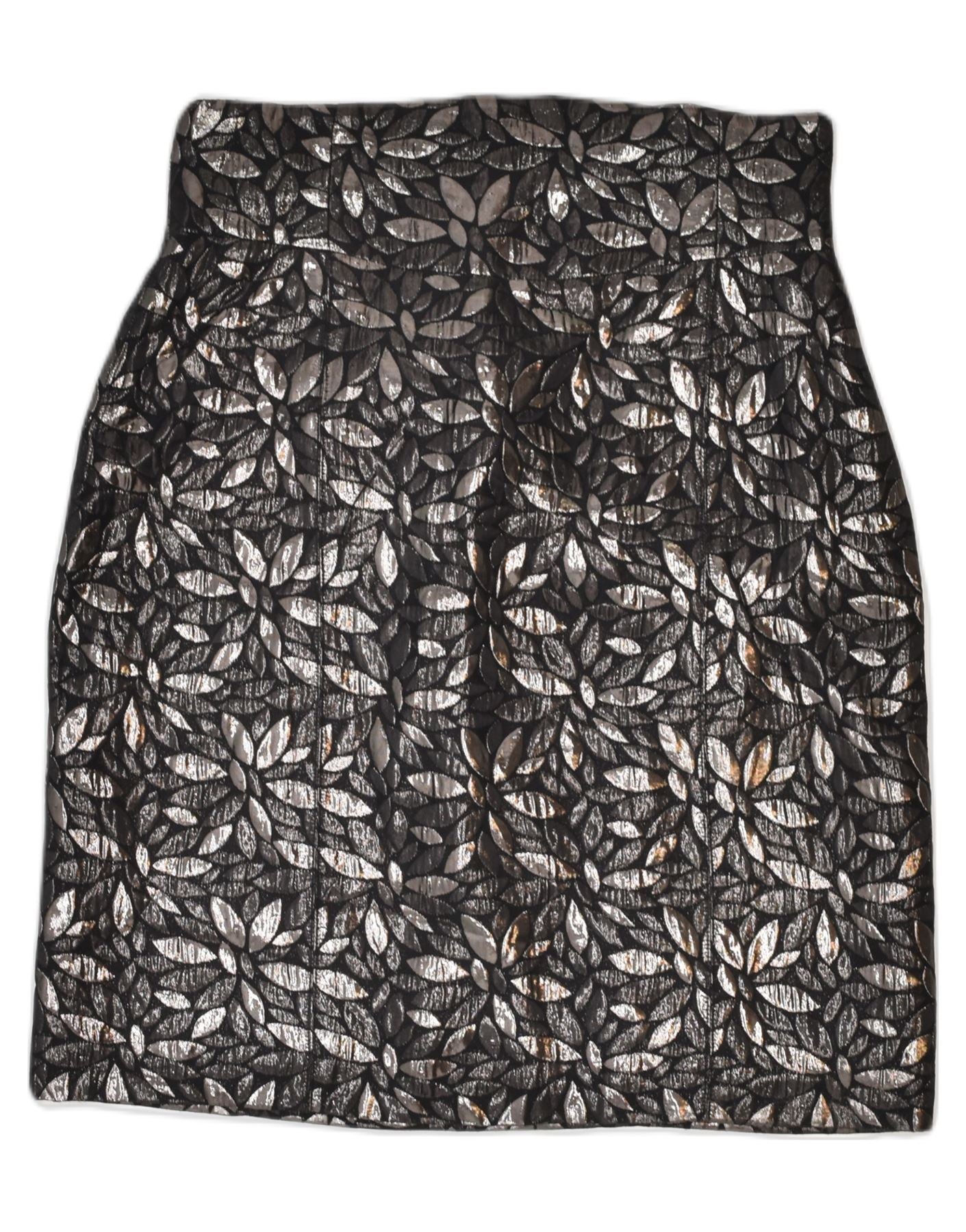Saia reta feminina JO NO FUI IT 46 grande W30 acetato floral preto