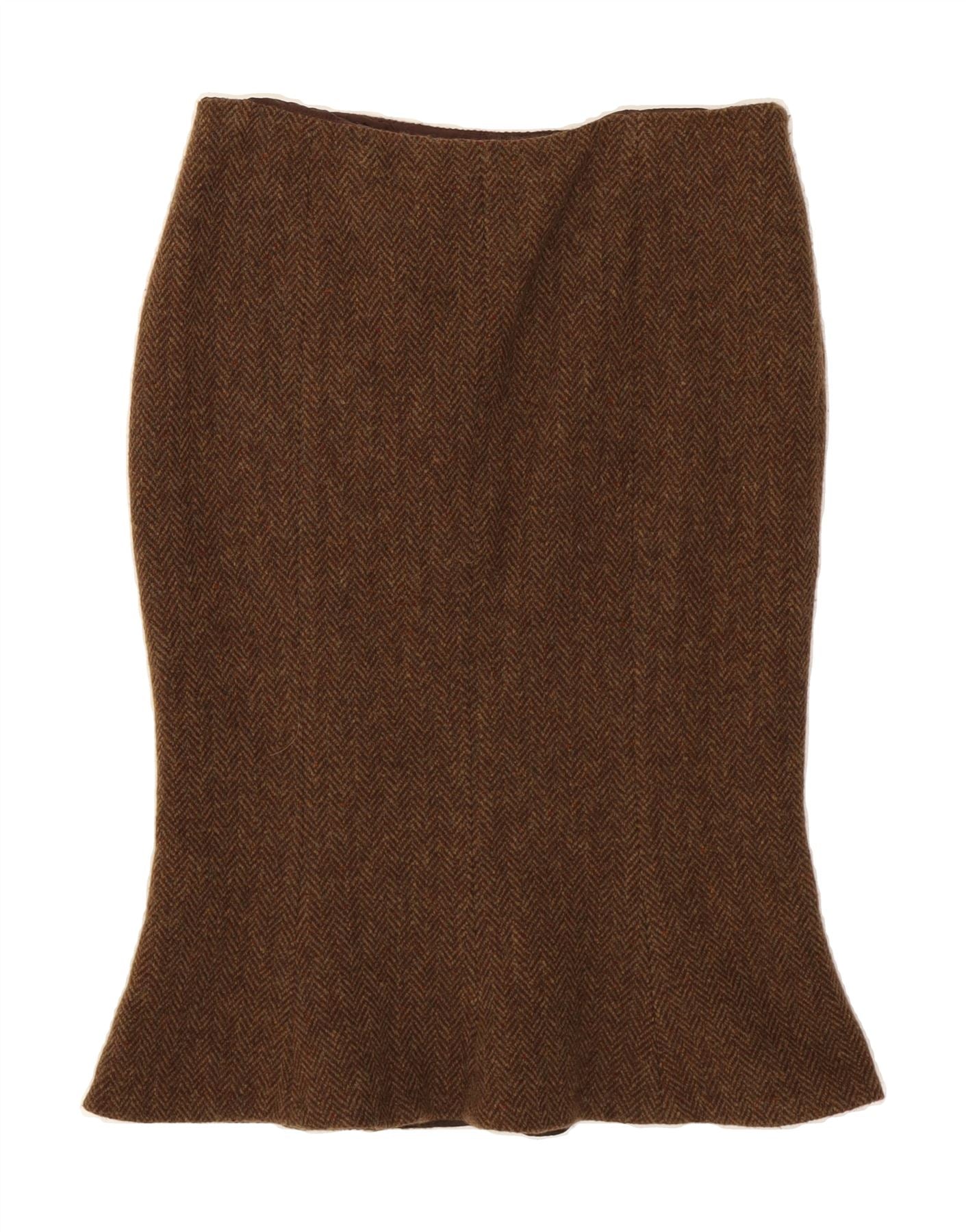 Saia trompete feminina RALPH LAUREN EUA 10 grande W30 espinha de peixe marrom