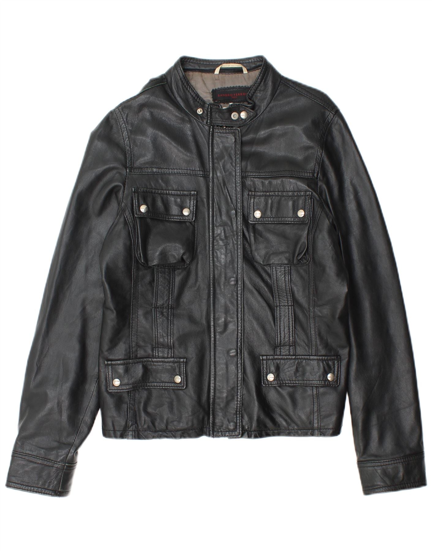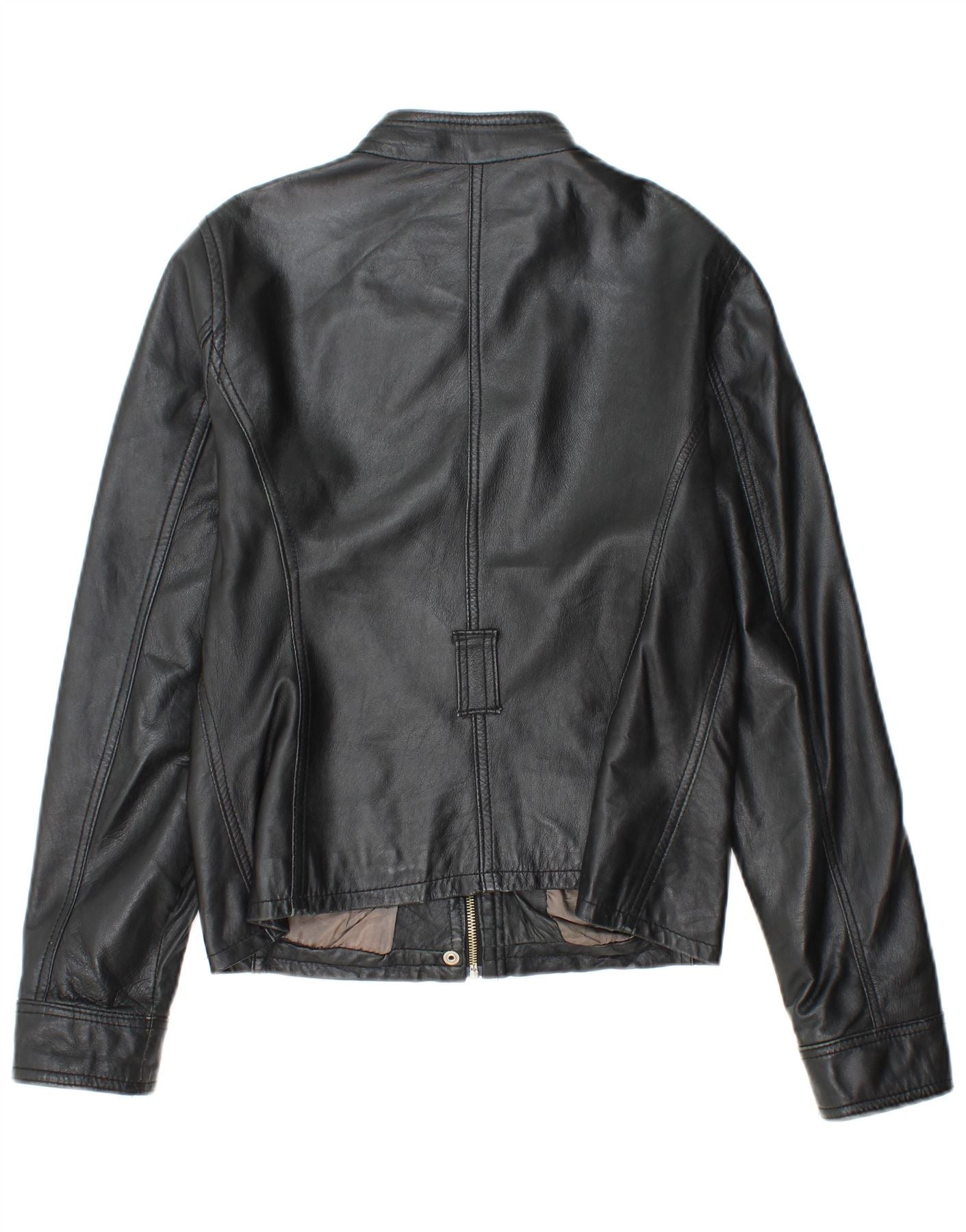 Jaqueta de couro feminina SANDRO FERRONE Reino Unido 14 grande couro preto