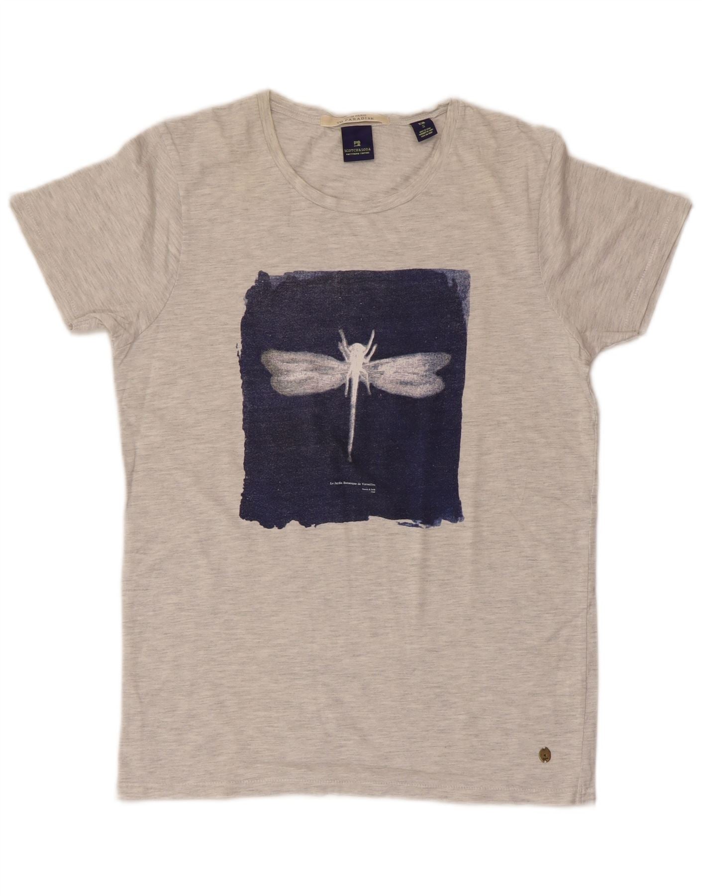 SCOTCH & SODA Camiseta masculina gráfica top pequeno algodão cinza