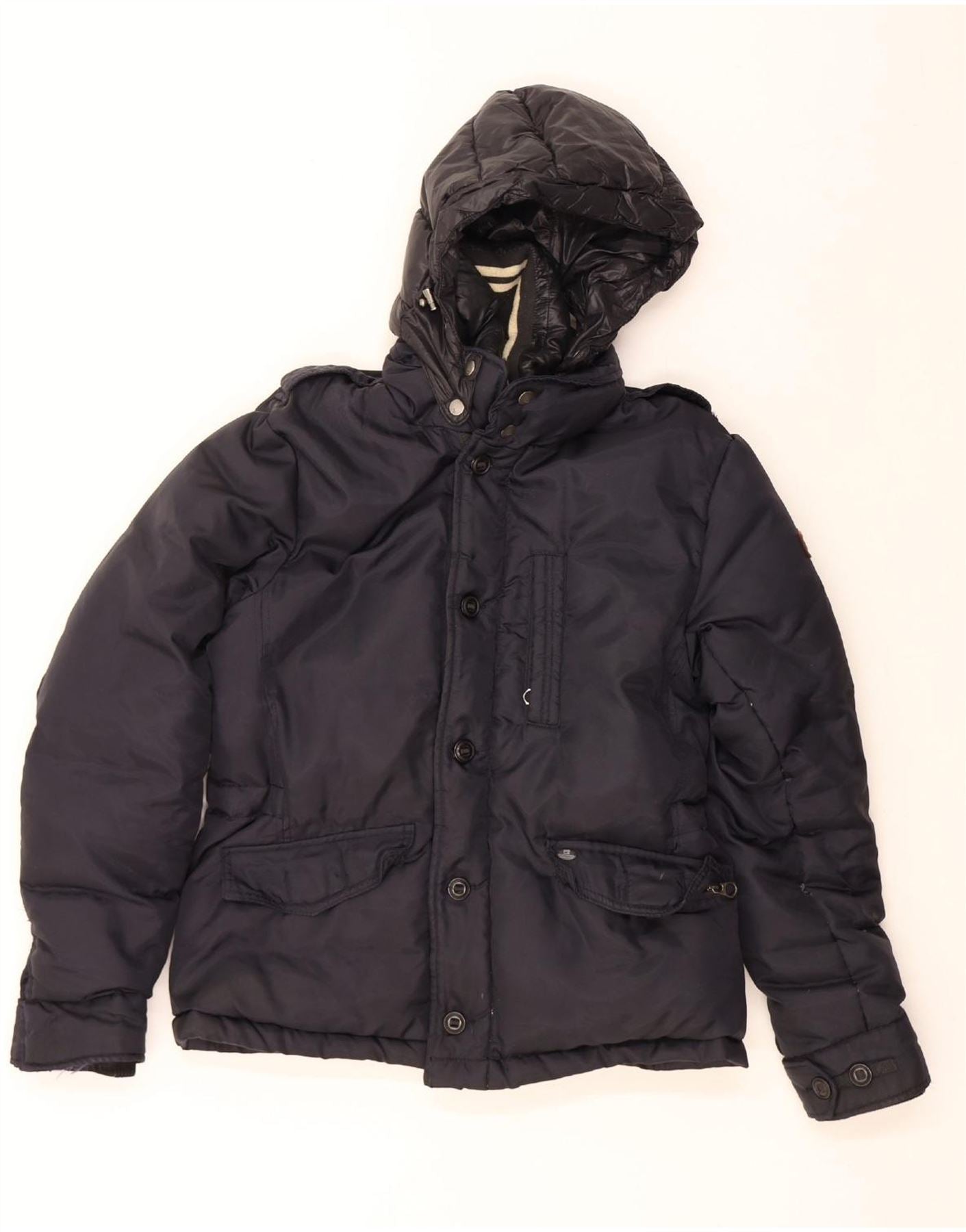 SCOTCH & SODA Mens Hooded Padded Jacket UK 38 Medium Navy Blue Polyester