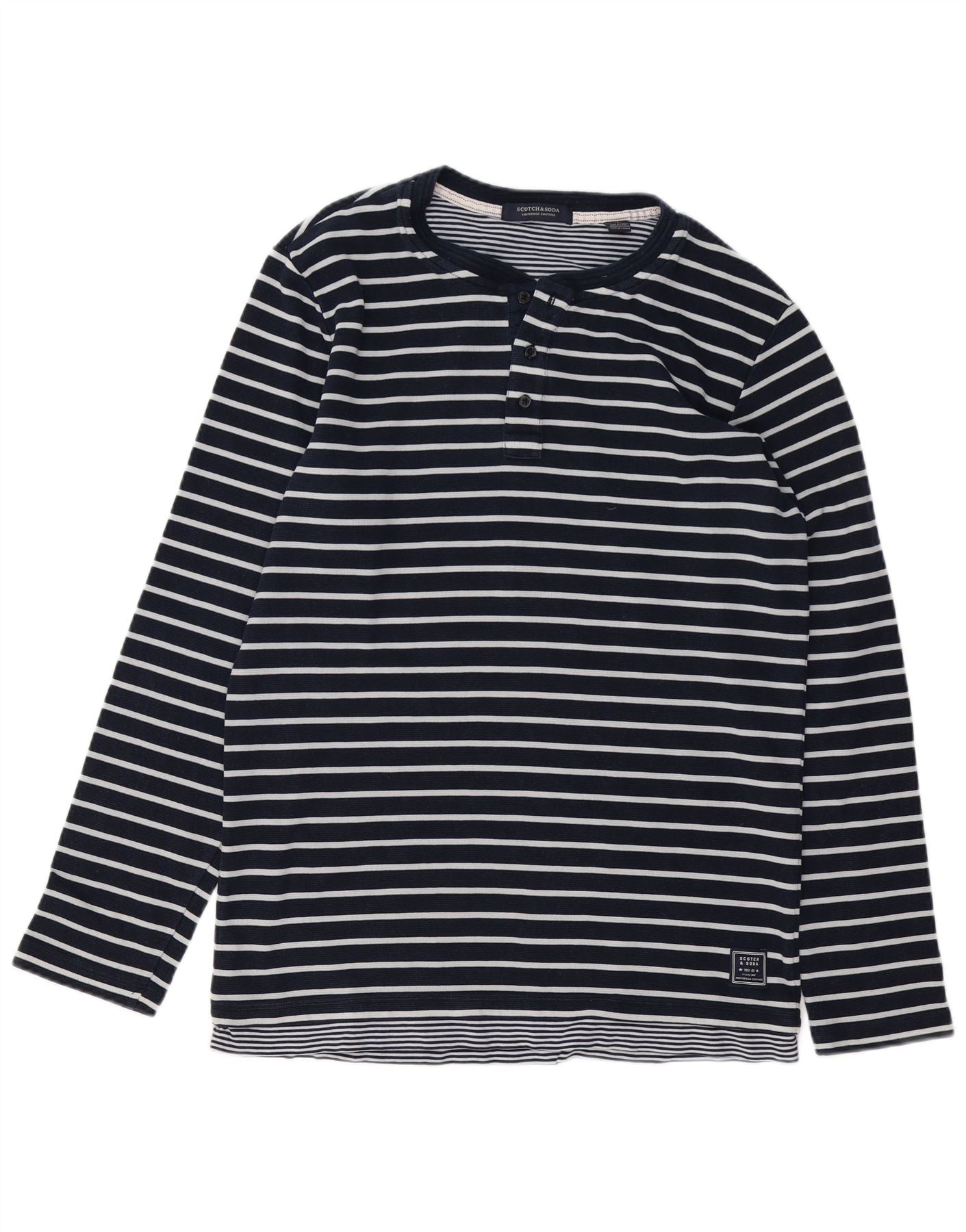 SCOTCH & SODA Camiseta masculina de manga comprida grande algodão listrado azul marinho