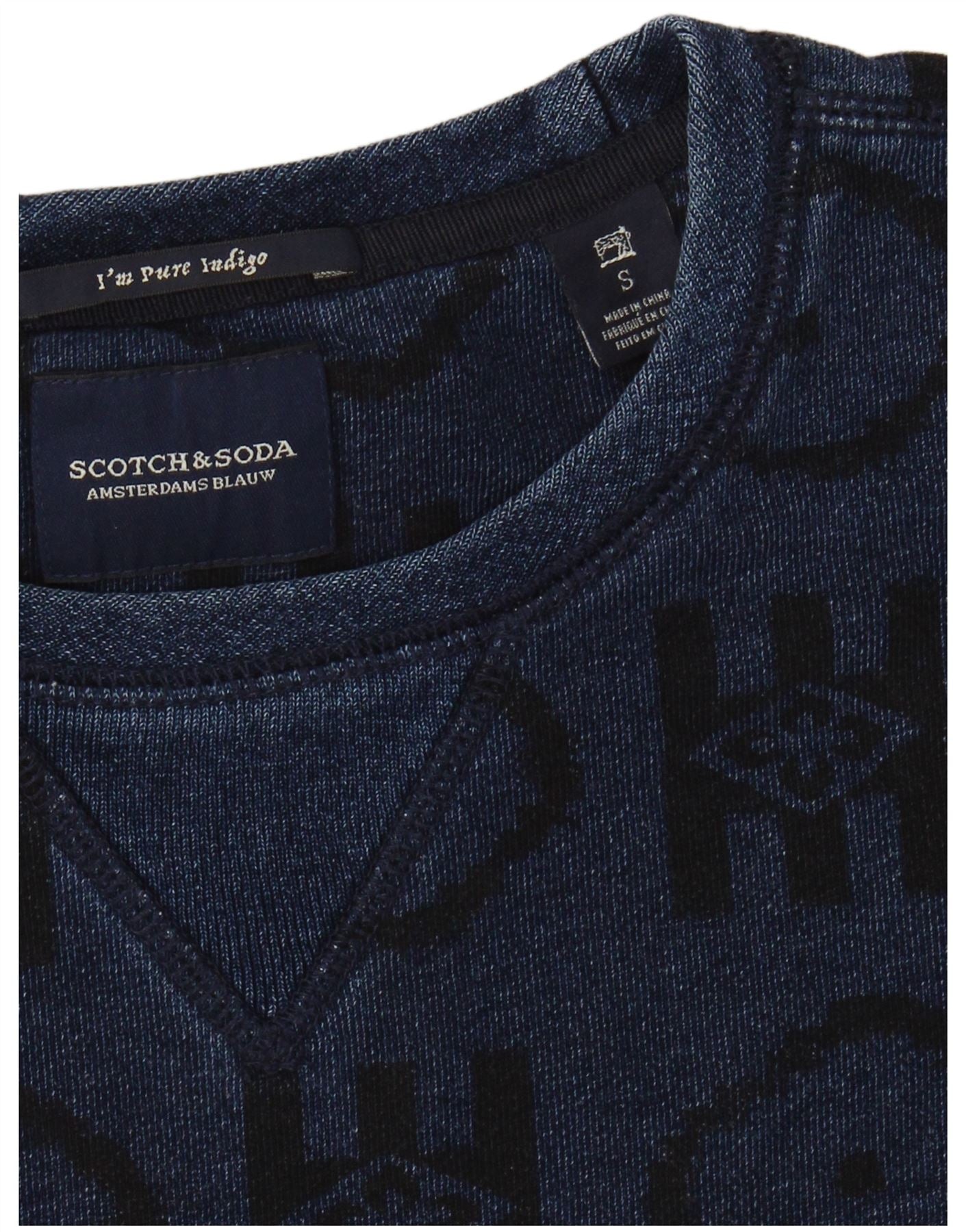 SCOTCH & SODA Suéter masculino índigo pequeno azul marinho geométrico