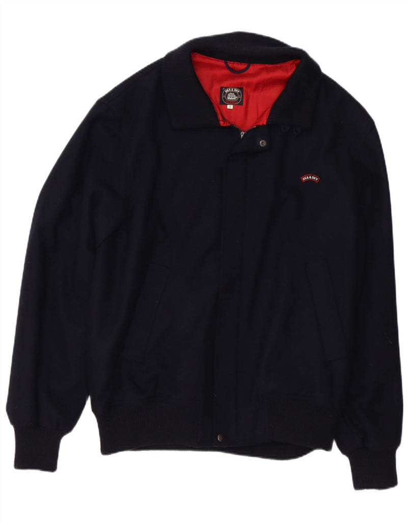 SEA & SKY Mens Yachting Bomber Jacket IT 48 Medium Navy Blue Wool