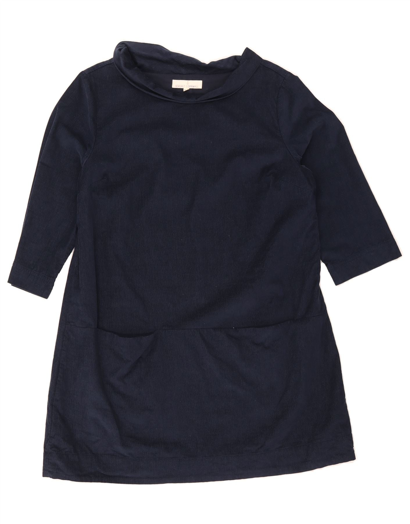 SEASALT CORNWALL Vestido feminino de veludo cotelê A-Line UK 14 Médio Azul Marinho