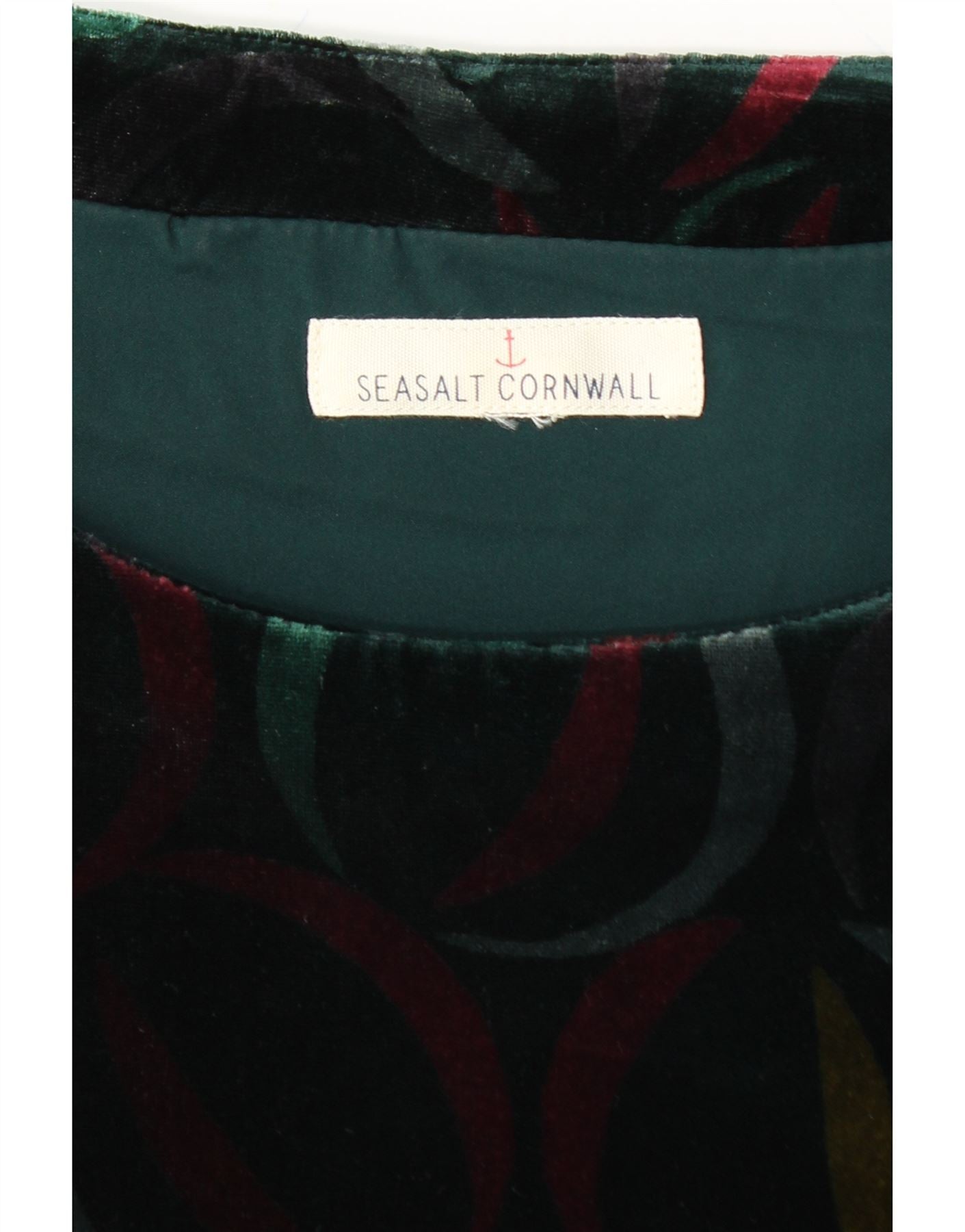 SEASALT CORNWALL Vestido feminino de veludo linha A Reino Unido 18 XL verde geométrico