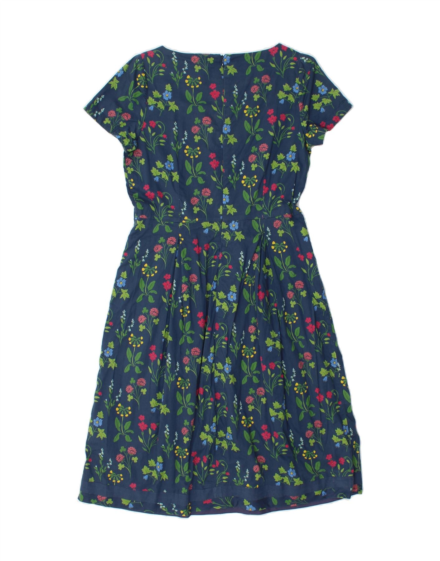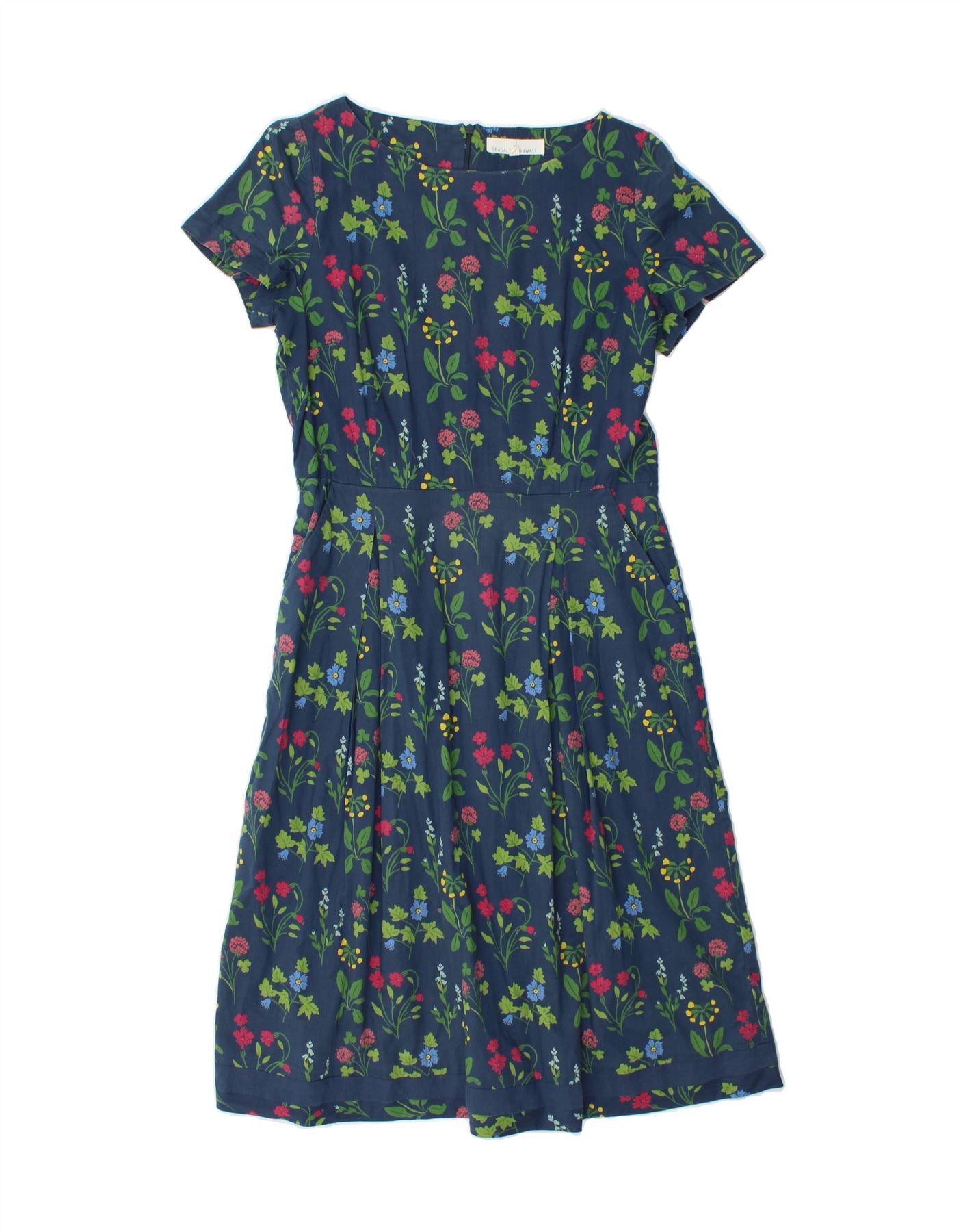 SEASALT CORNWALL Vestido feminino evasê Reino Unido 10 pequeno algodão floral azul