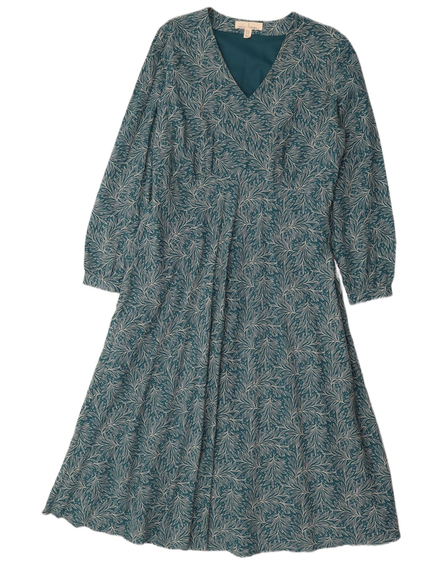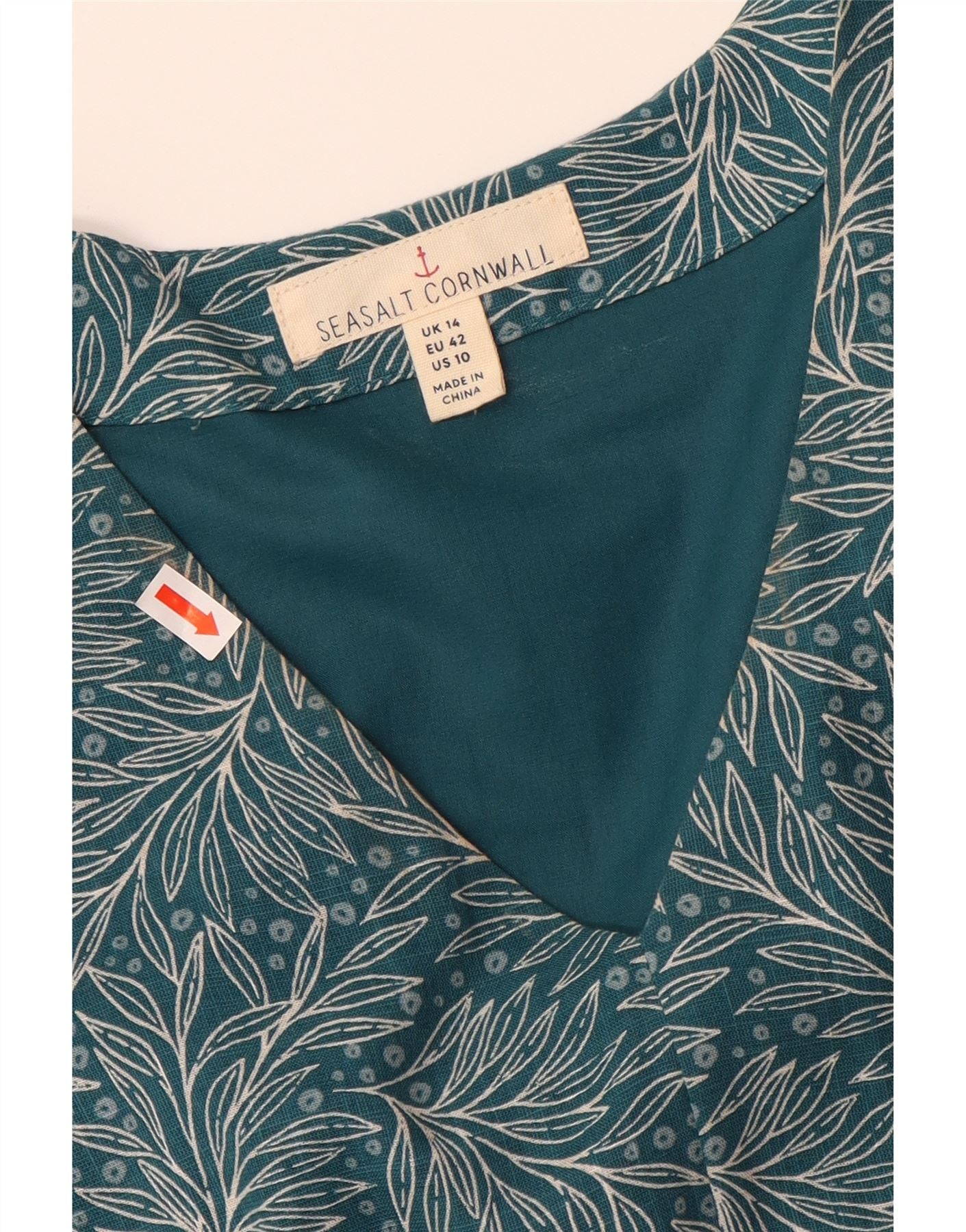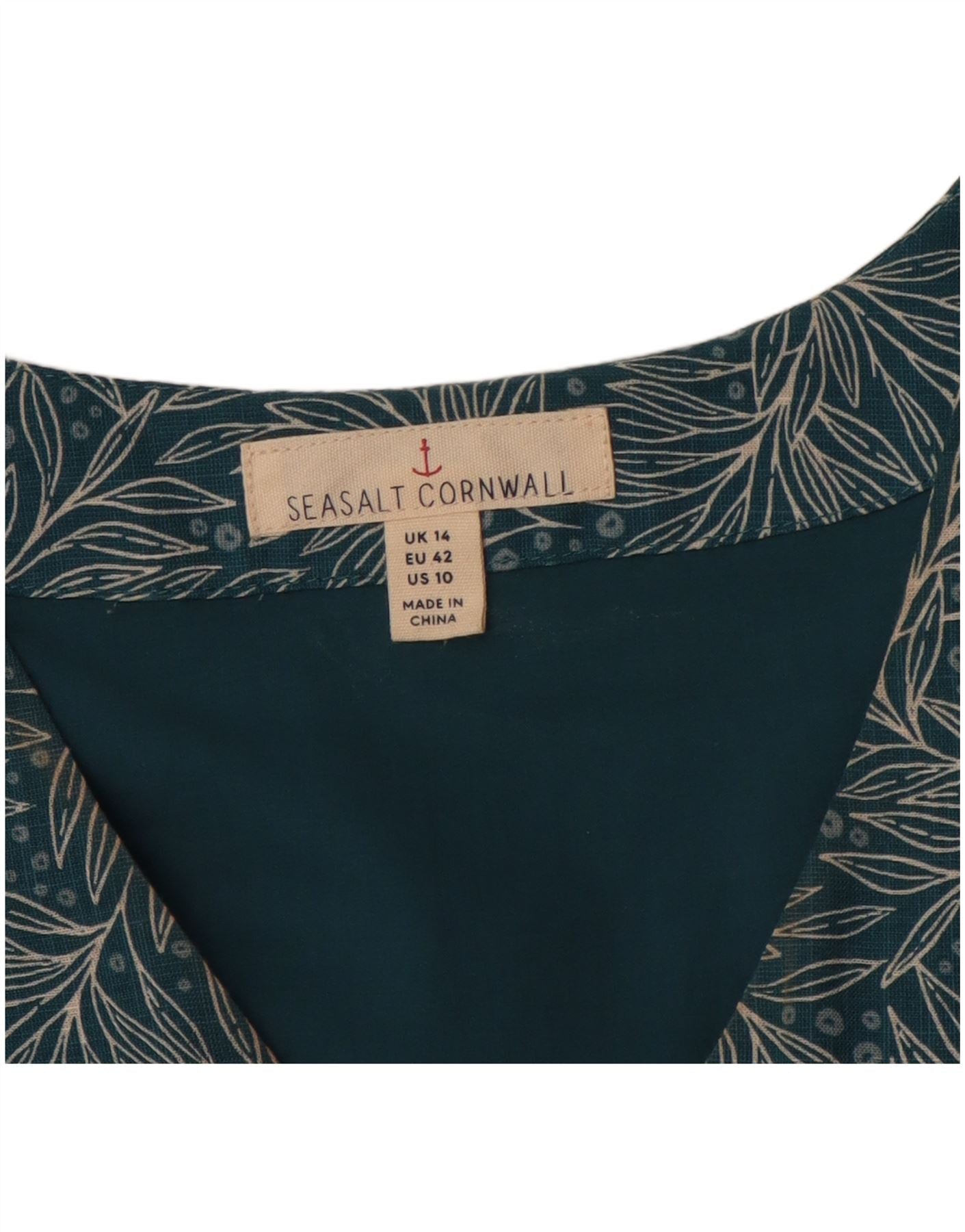 SEASALT CORNWALL Vestido feminino evasê Reino Unido 14 grande algodão floral verde