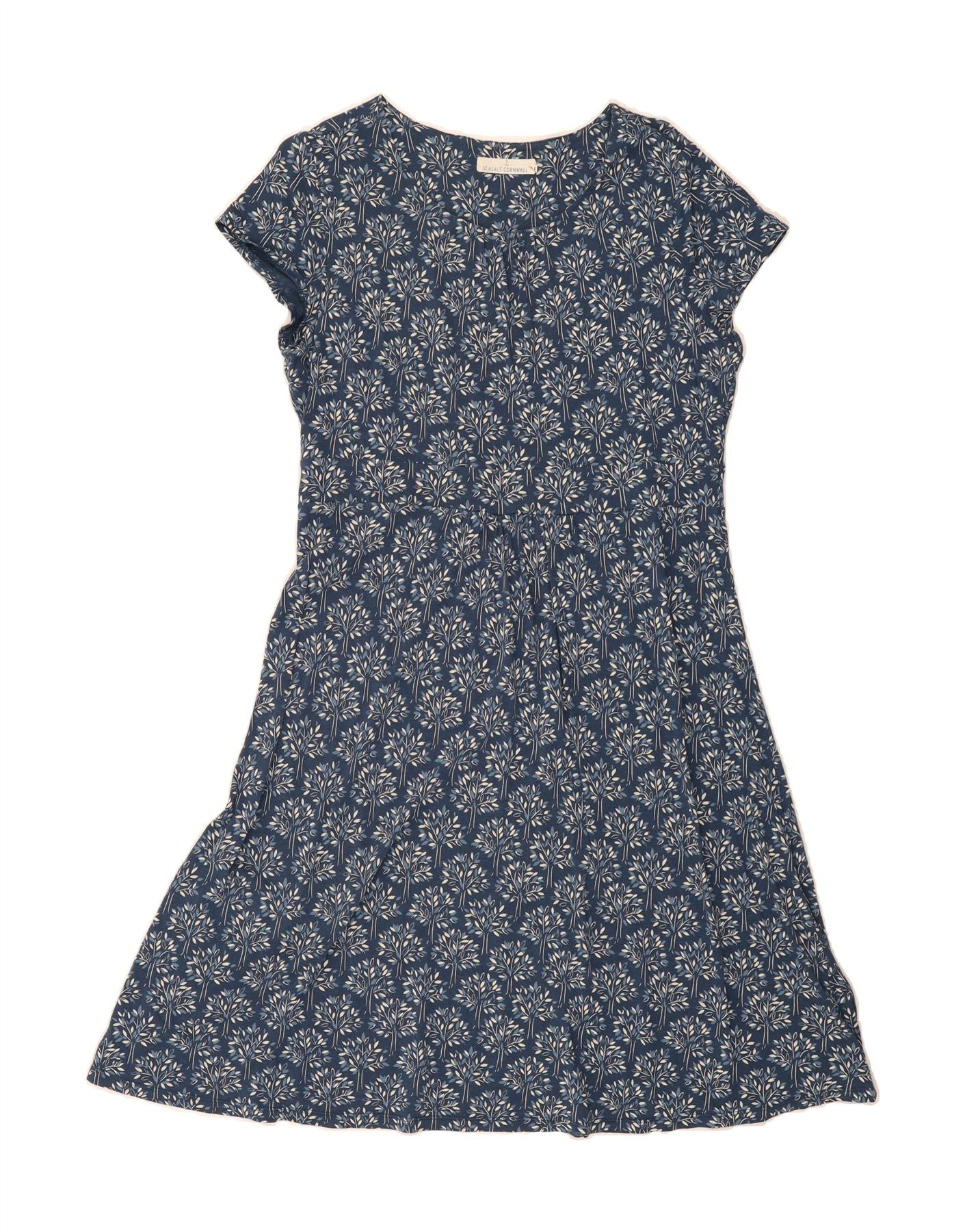 SEASALT CORNWALL Vestido feminino evasê UK 16 grande azul floral viscose