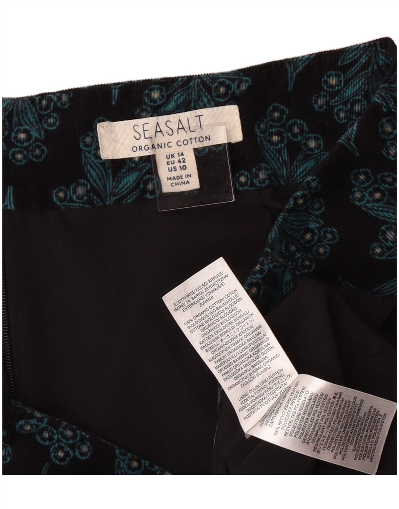 SEASALT Saia feminina de veludo cotelê Reino Unido 14 grande W32 algodão floral preto