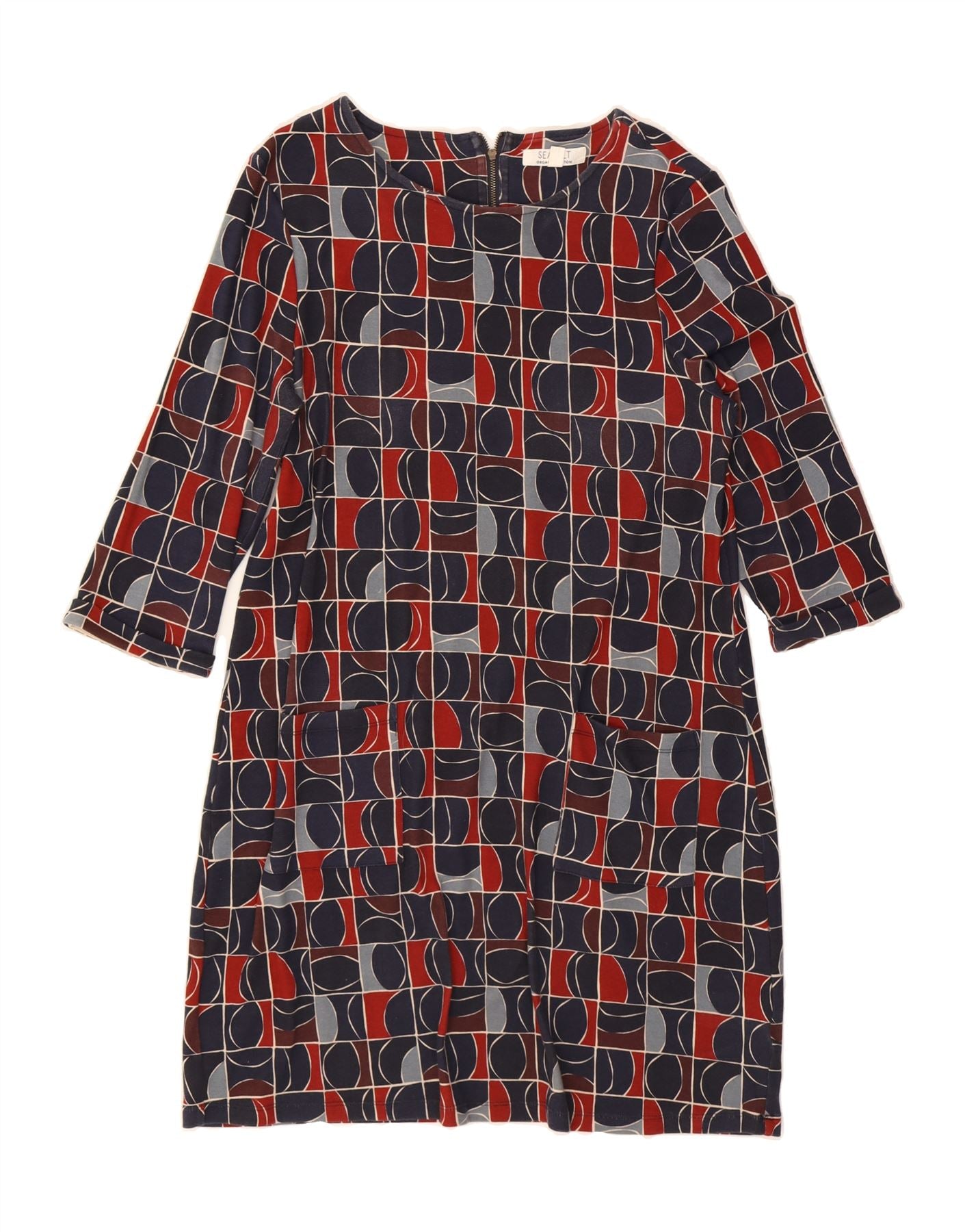 Home > mulheres > Roupas Depop > SEASALT Vestido feminino manga 3/4 com bainha UK 16 grande azul marinho geométrico