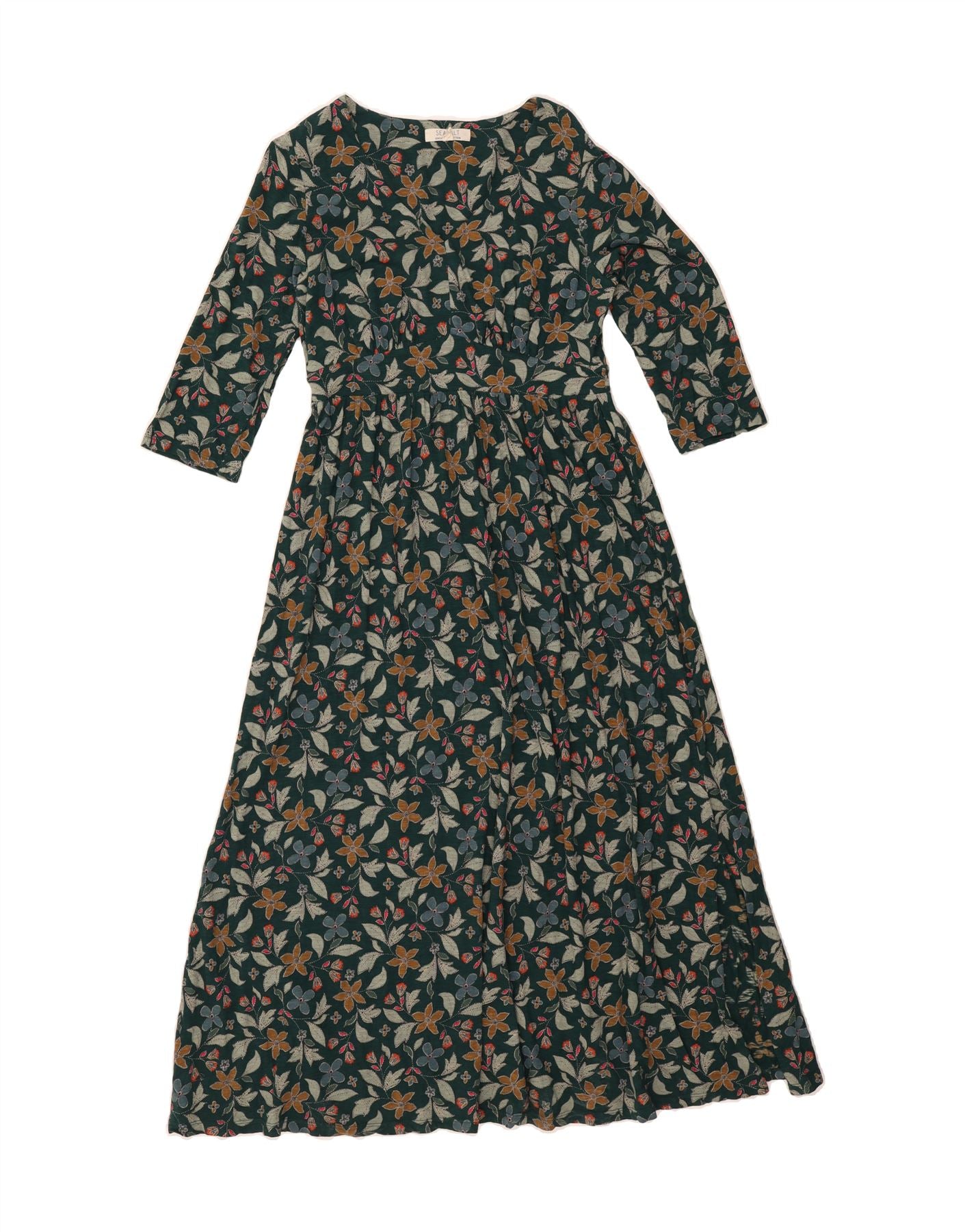 SEASALT Vestido maxi feminino manga 3/4 Reino Unido 12 algodão floral verde médio