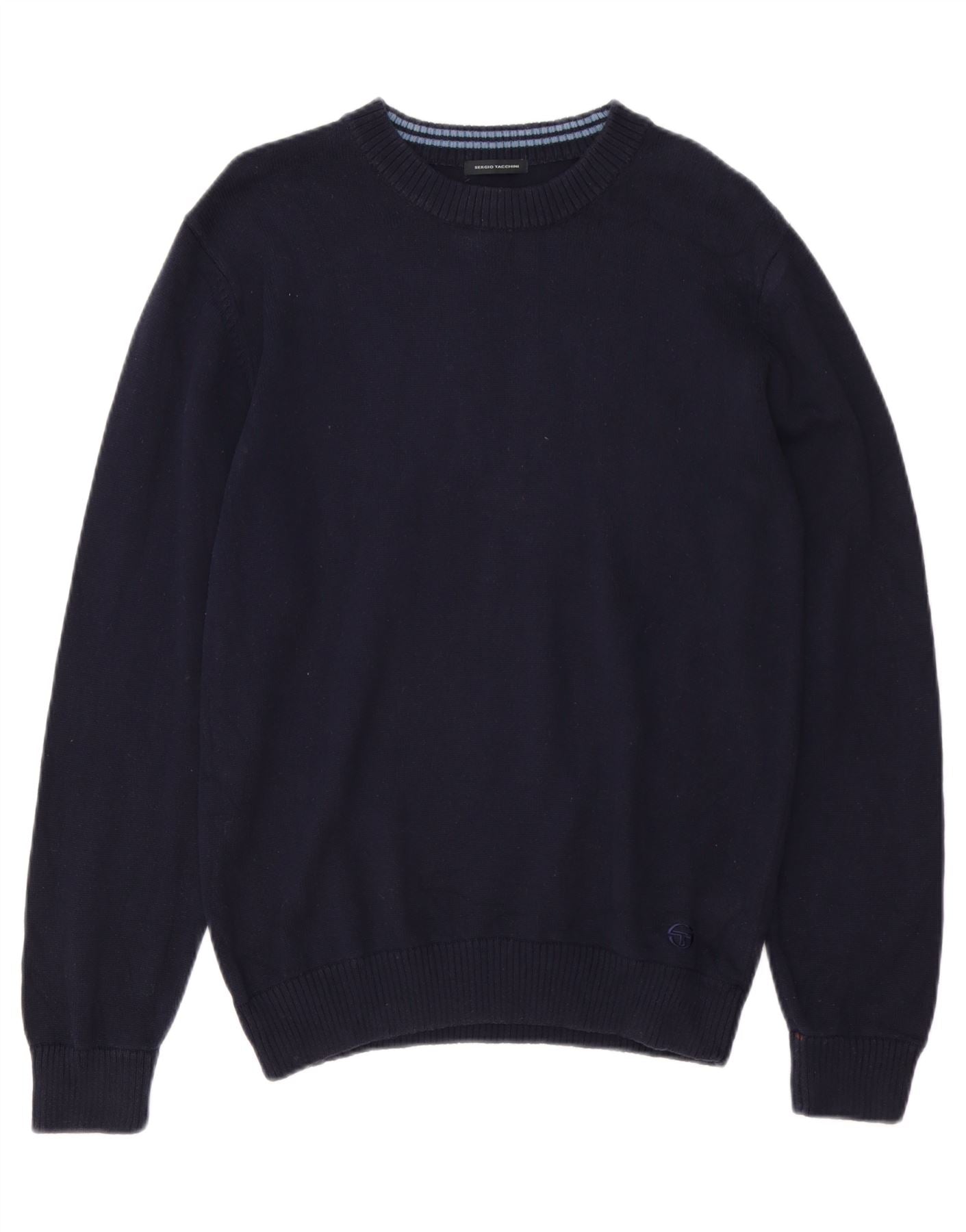 SERGIO TACCHINI Mens Crew Neck Jumper Sweater Large Navy Blue Cotton