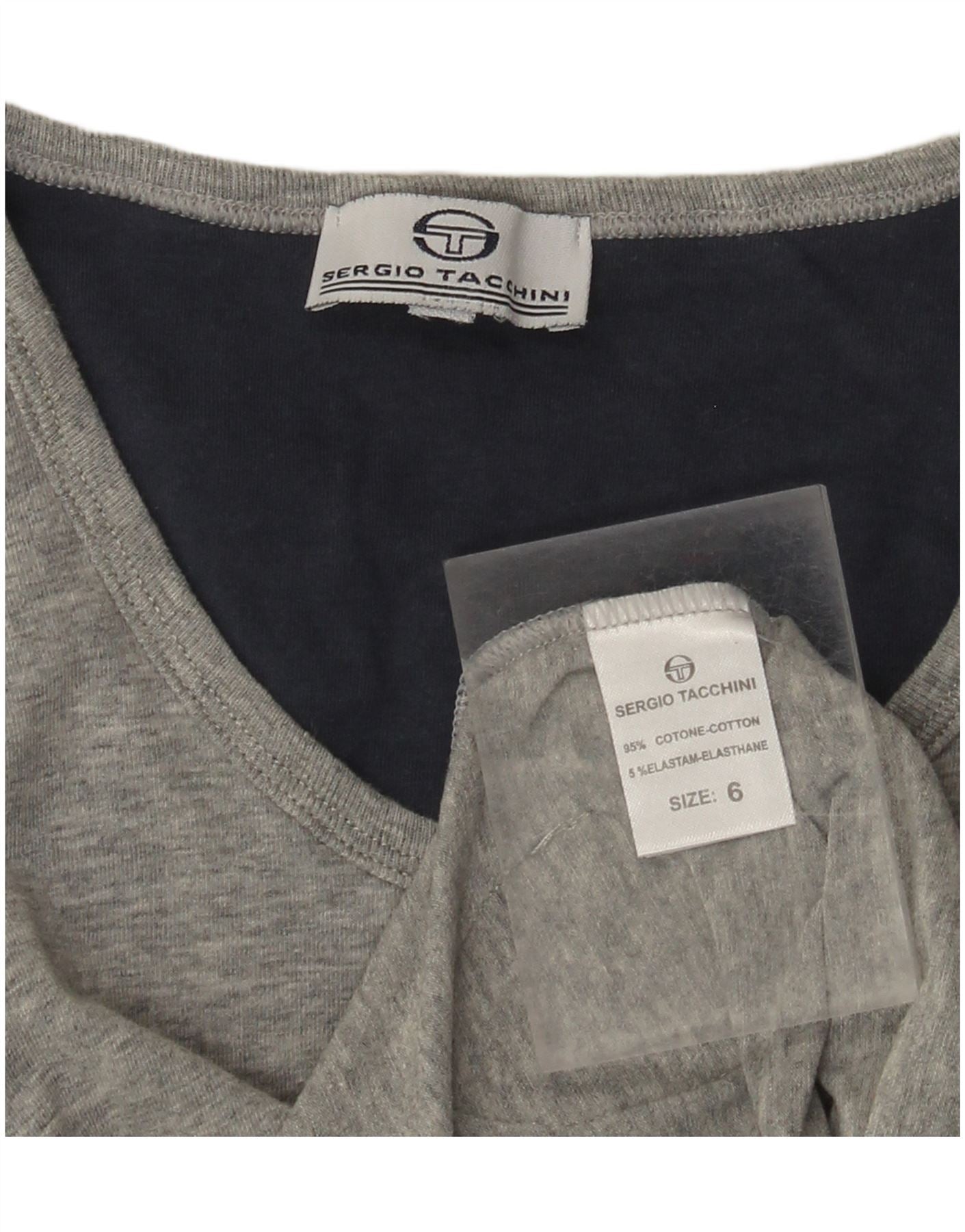 Sergio Tacchini Camiseta masculina gráfica top pequeno cinza colorblock algodão