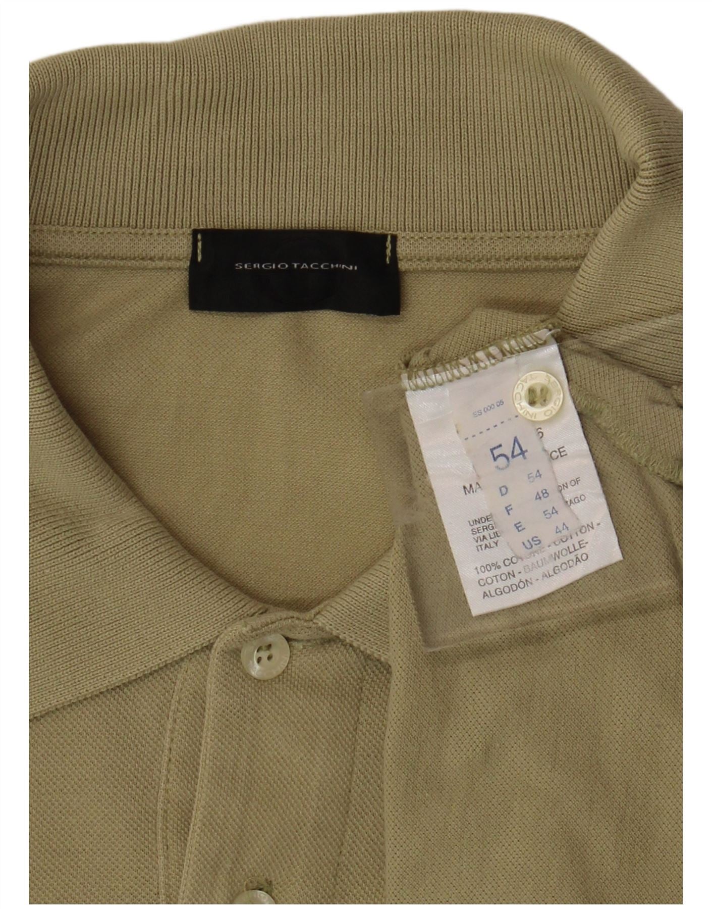 SERGIO TACCHINI Mens Long Sleeve Polo Shirt IT 54 XL Khaki Cotton