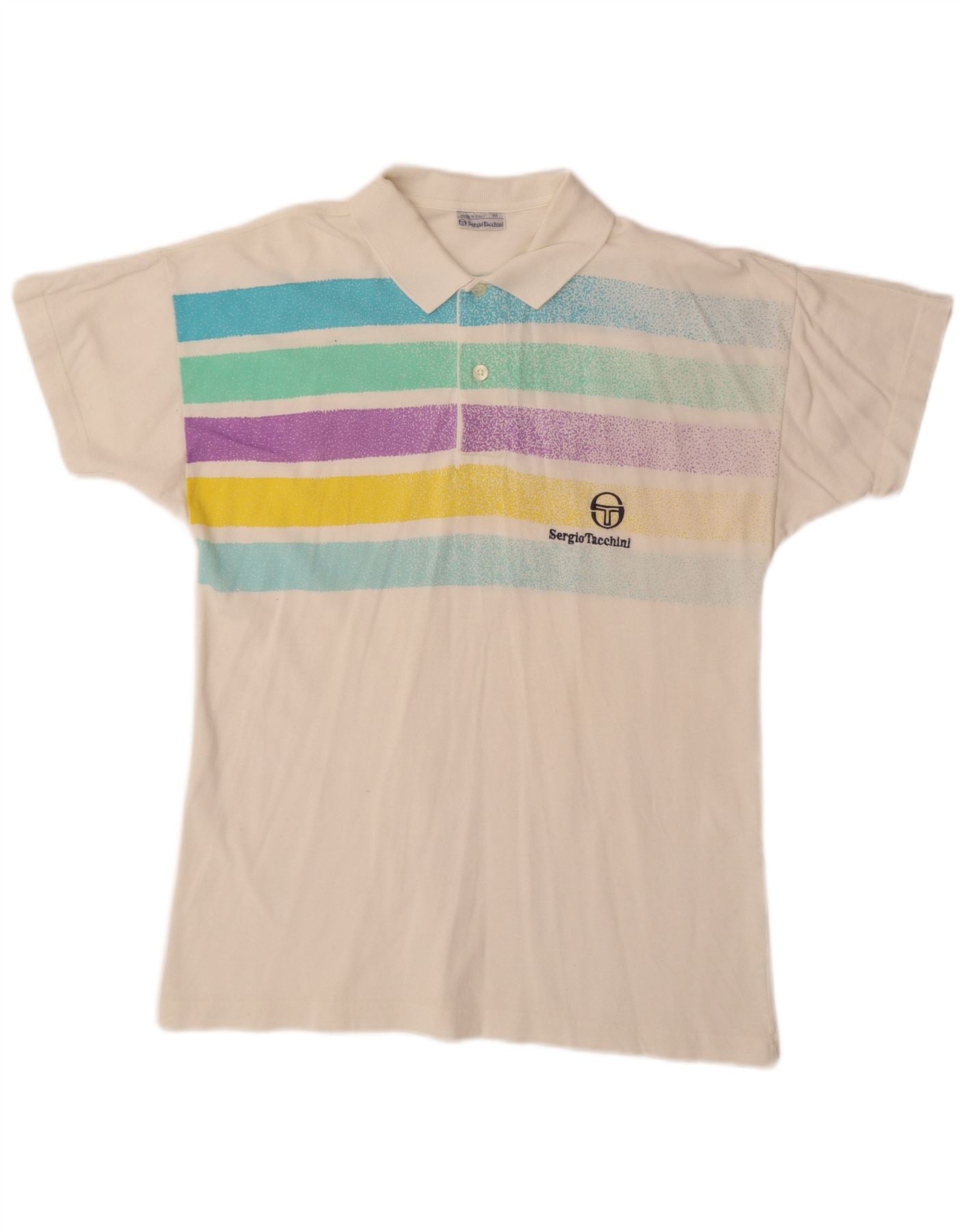 SERGIO TACCHINI Camisa polo masculina pequena listrada branca de algodão